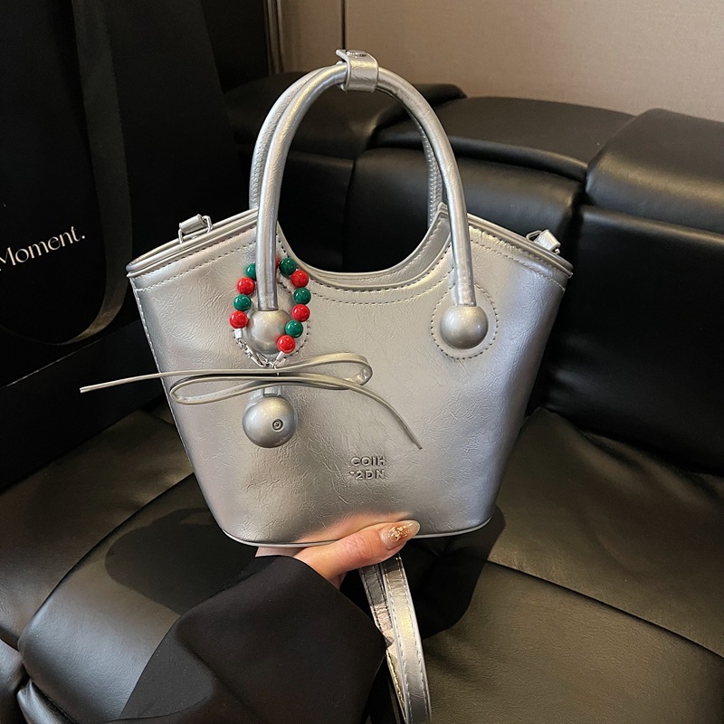 跨境休闲简约蝴蝶结菜篮子新款时尚洋气斜挎包外出单肩手拎水桶包