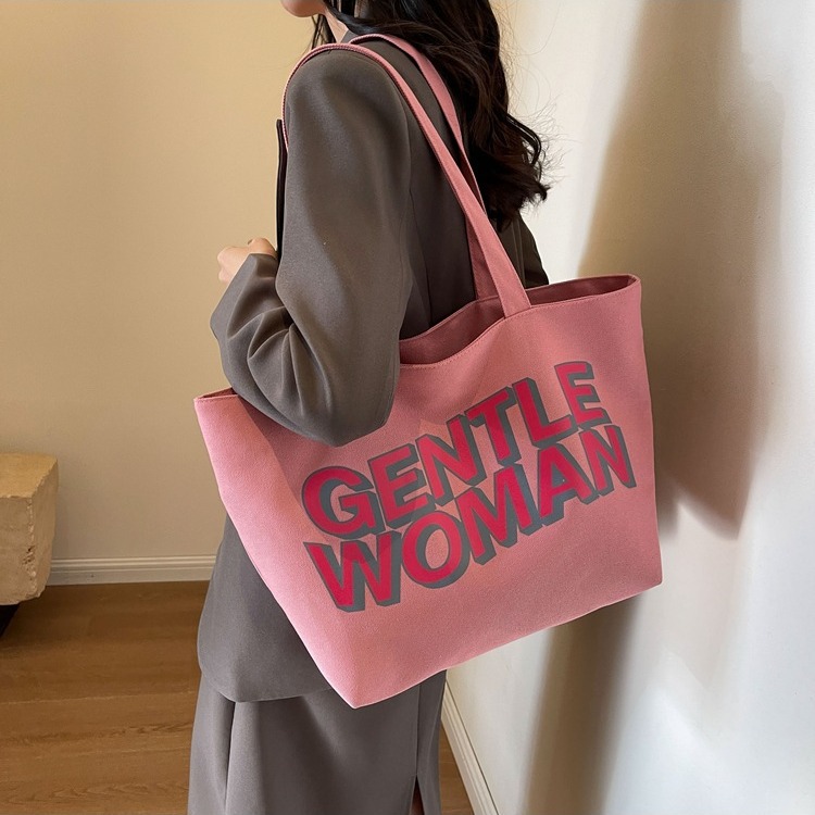 新款质感休闲手提单肩包泰国Gentlewoman字母印花帆布包包女
