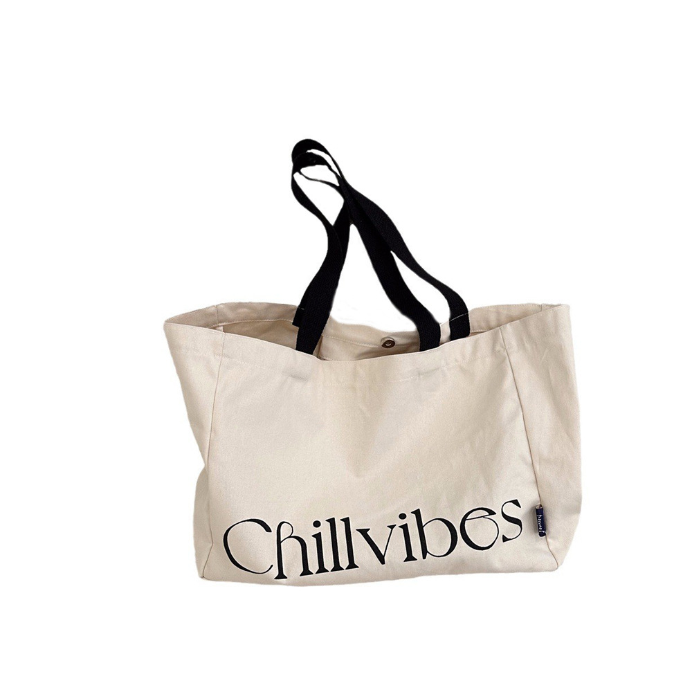 小众休闲帆布袋女字母印花逛街包清便购物袋手提大容量单肩
