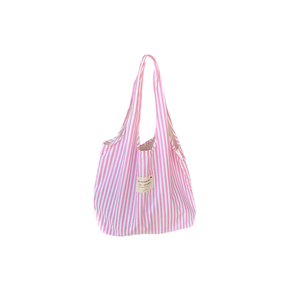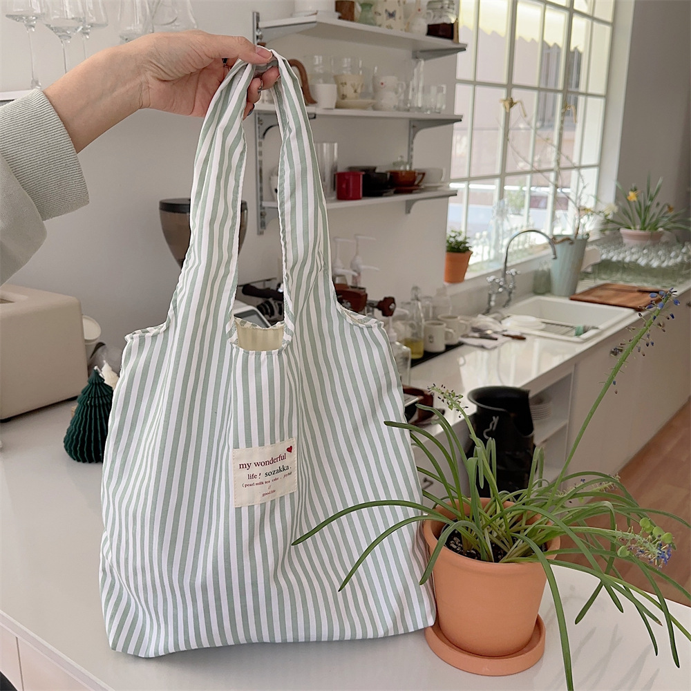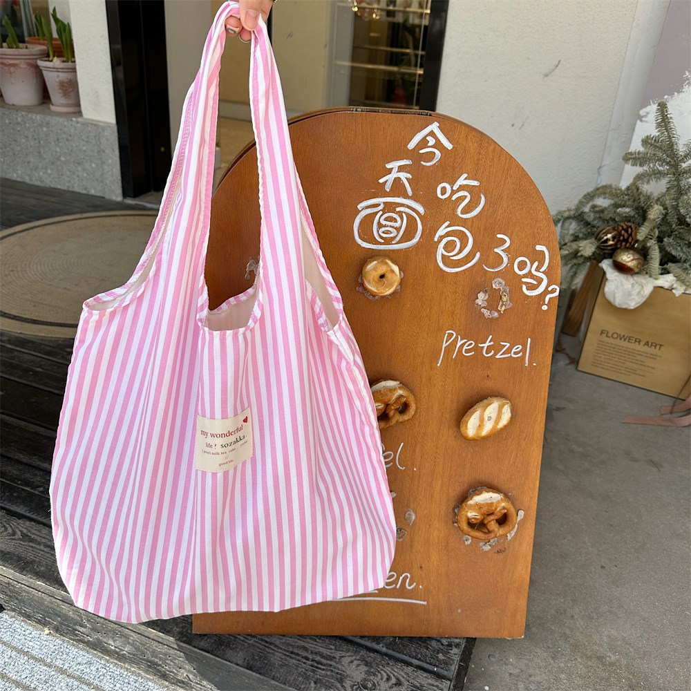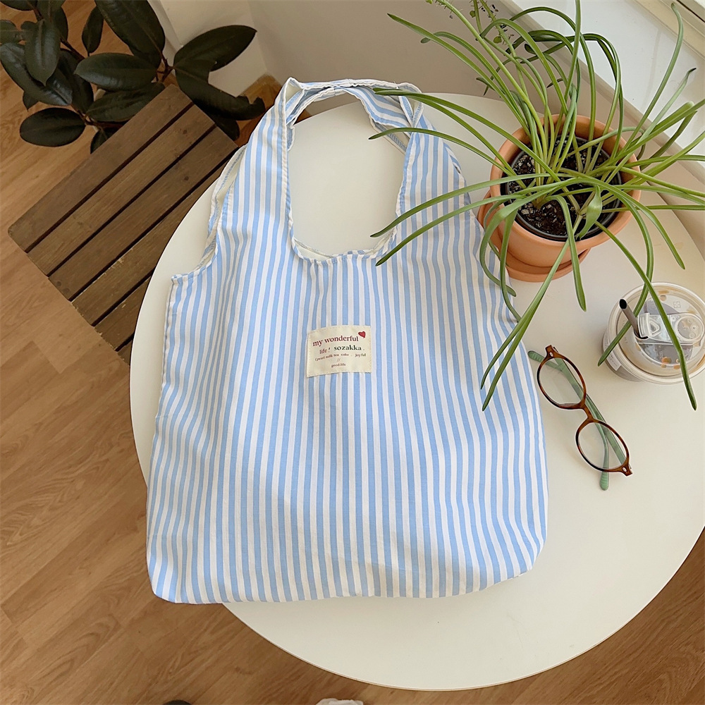 新款ins条纹帆布包女学生上课单肩手提袋大容量春夏背心包
