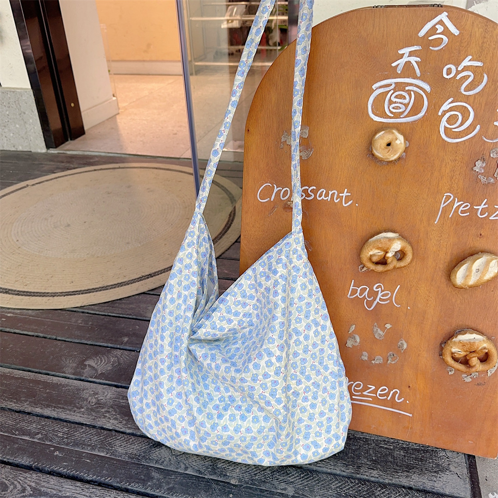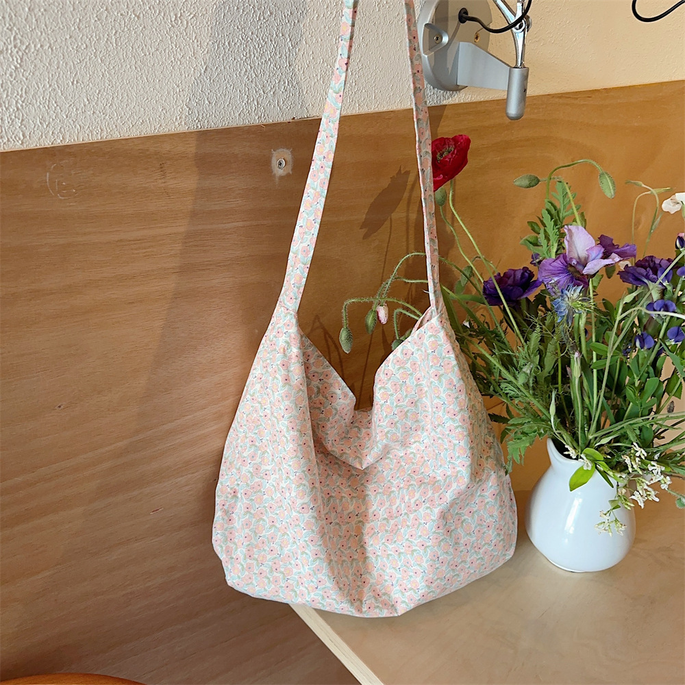 小碎花帆布包女大容量布袋慵懒新款学生斜挎单肩包托特包