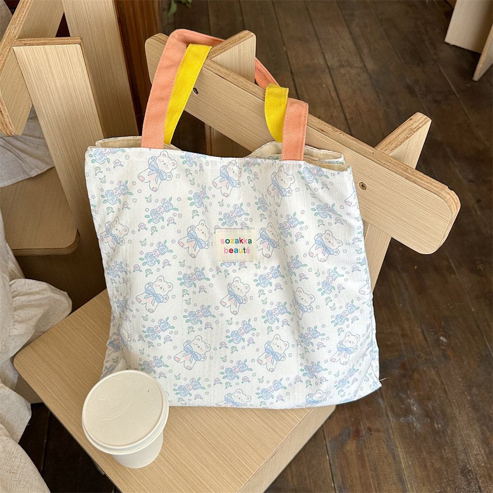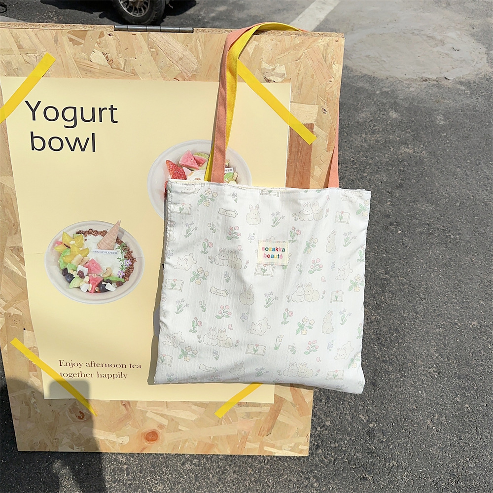 黄色帆布包韩国印花大容量通勤单肩包简约购物袋潮