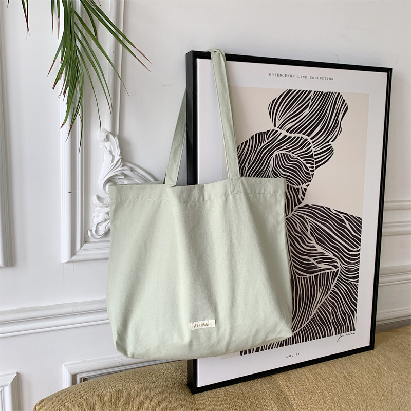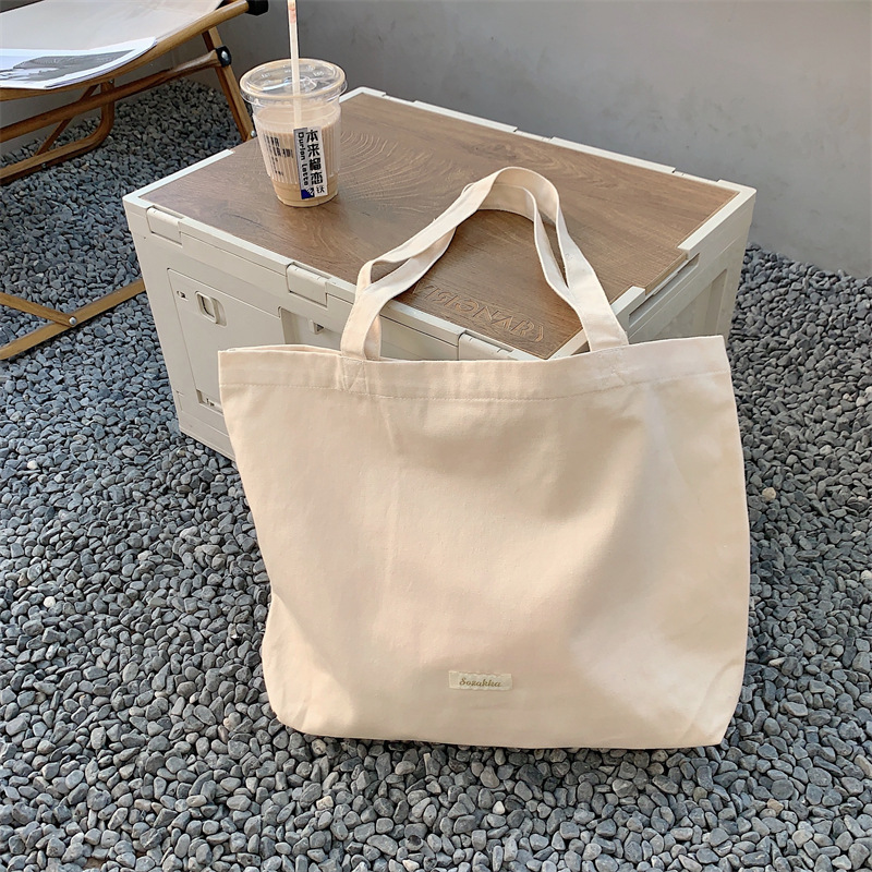 新款托特包女帆布包通勤包女学生单肩包上课包大容量纯色款