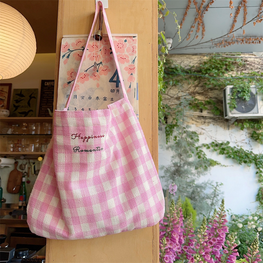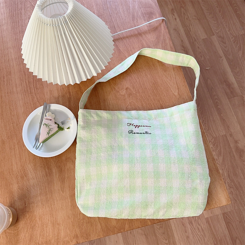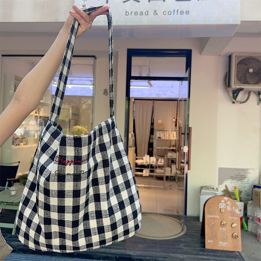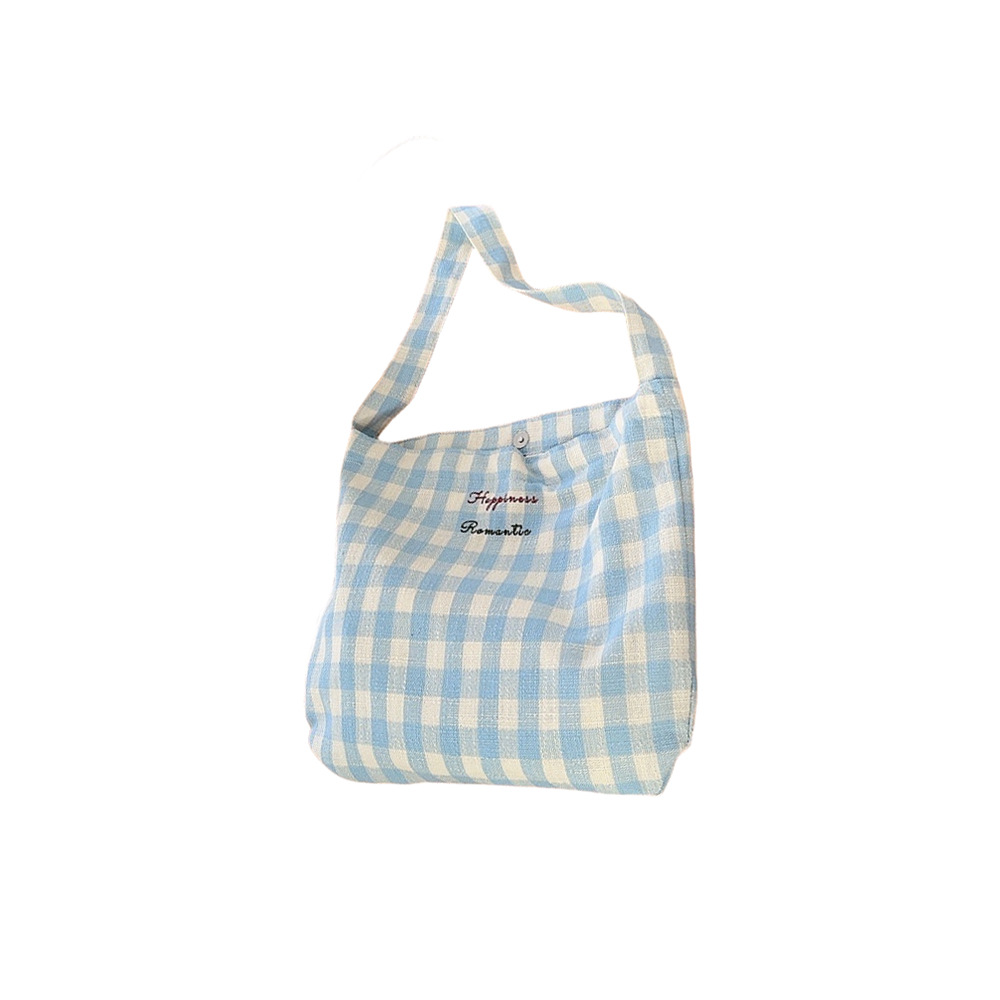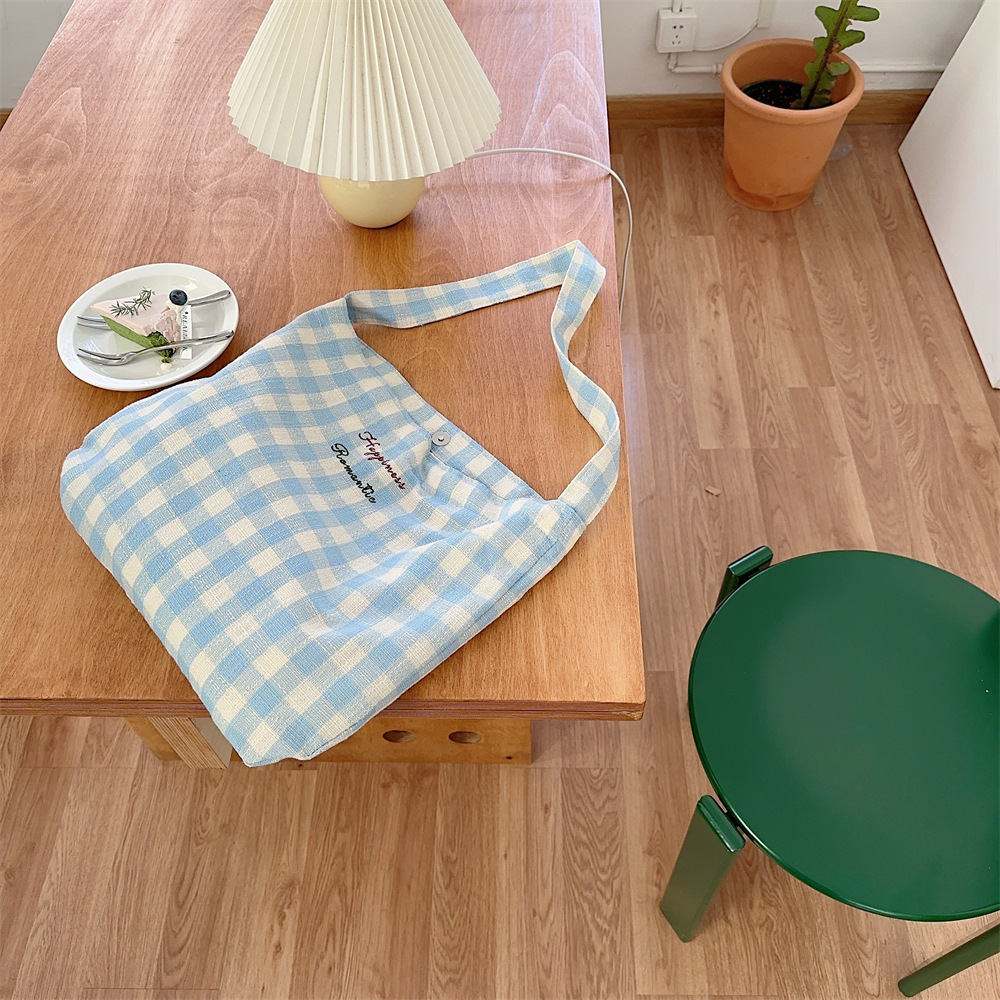 多巴胺单肩包包女新款潮日系ins棋盘格帆布包百搭斜挎枕头包