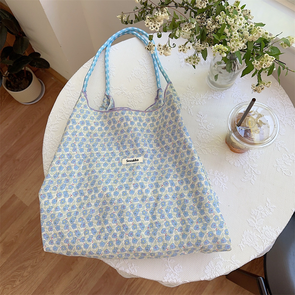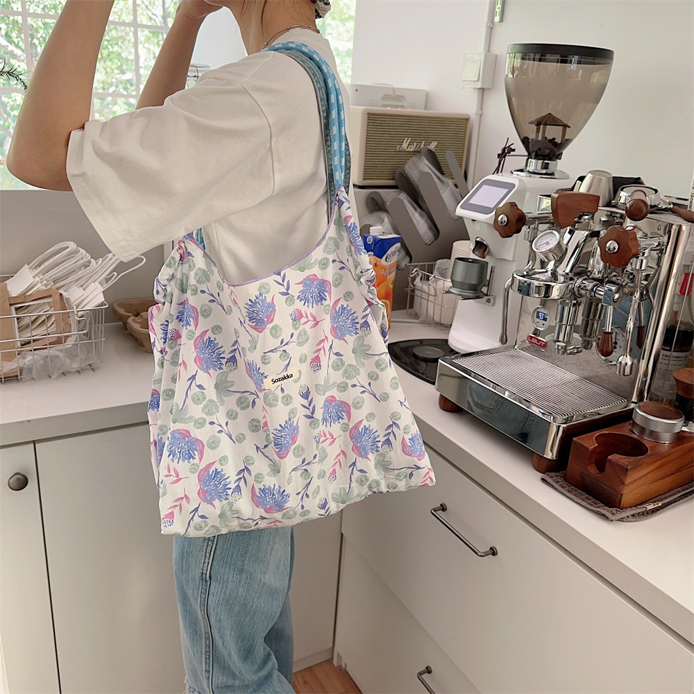 韩国ins温柔碎花帆布袋女单肩大容量帆布包通勤手提手拎包