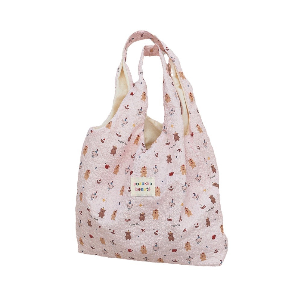 夏季卡通压花帆布包袋女大容量背心包逛街购物袋学生书包