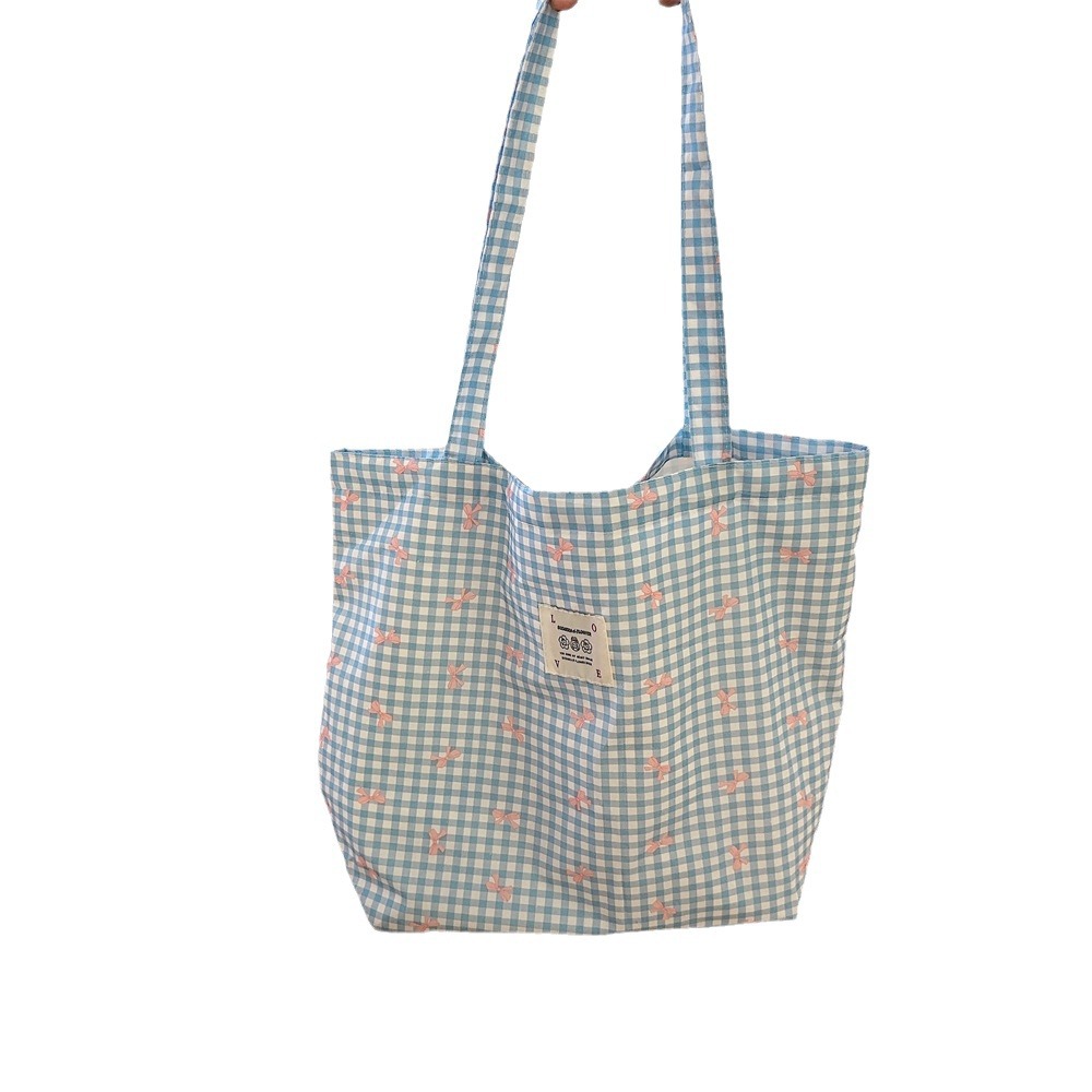 帆布包清新可爱少女印花蝴蝶结帆布包学生大容量上课单肩包