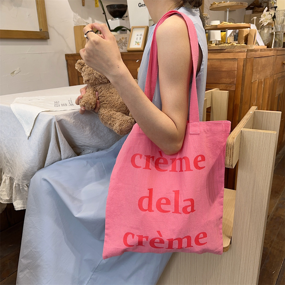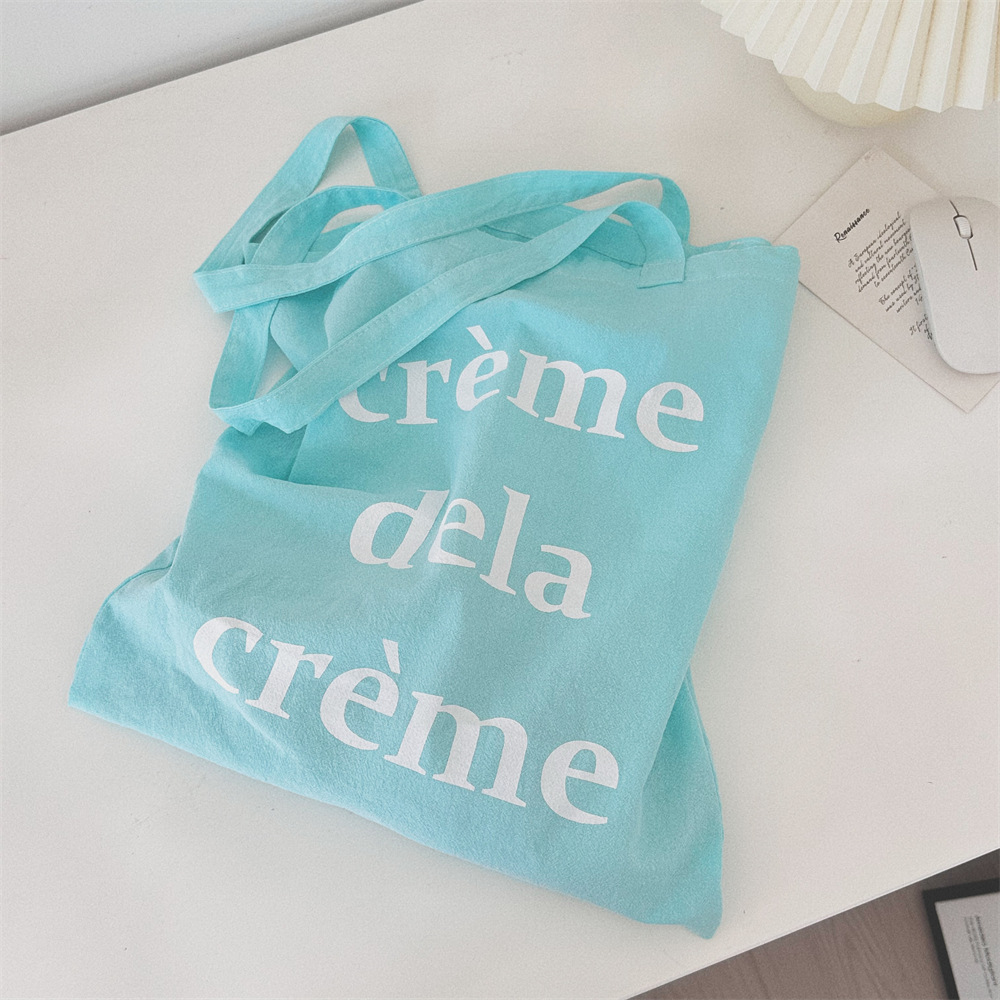 夏季薄款帆布袋薄荷绿帆布包印花字母包休闲外出旅游单肩包