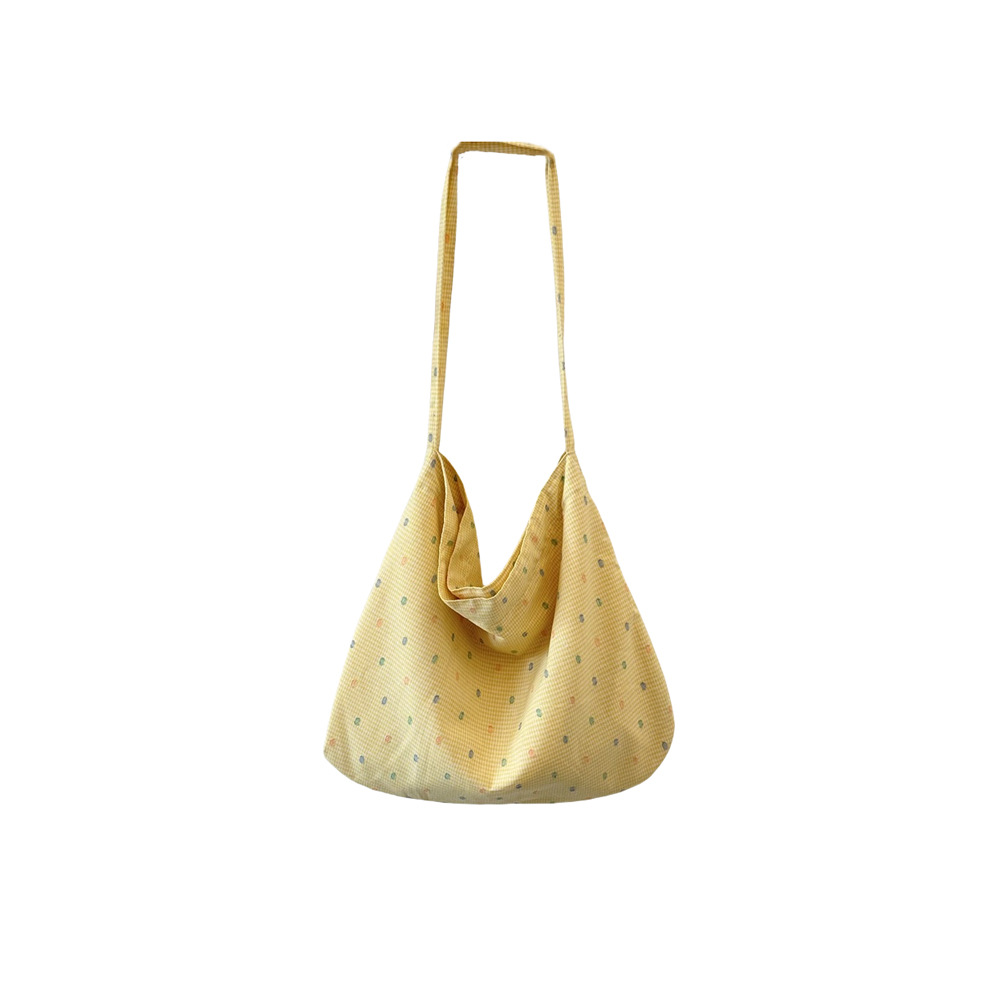 温柔奶黄波点夏季大容量小清新单肩时尚女包布袋斜挎腋下包