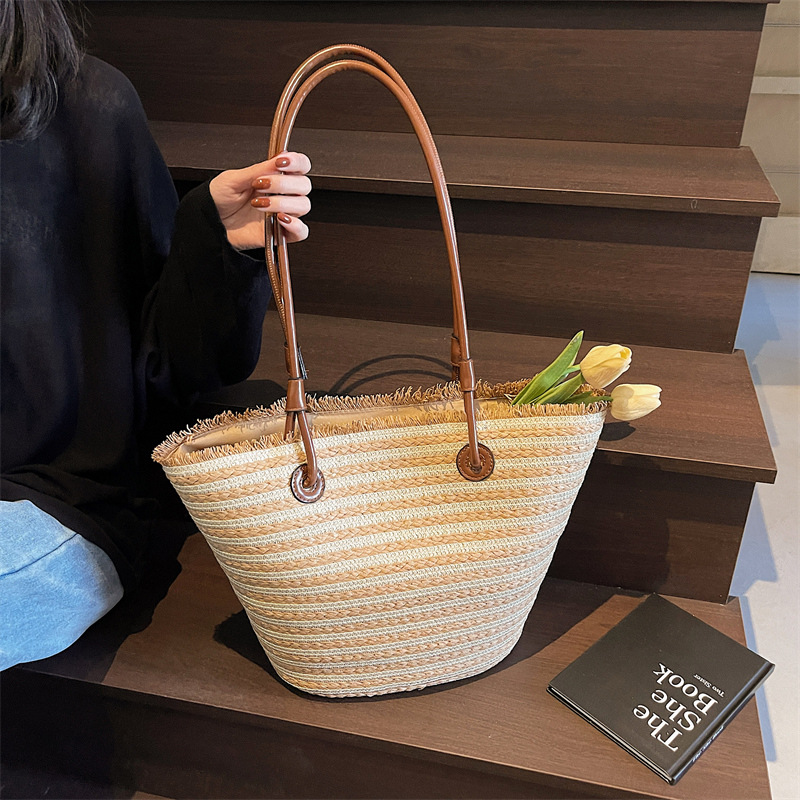 海边沙滩度假编织包2025夏季新款简约休闲草编包高级感百搭单肩包