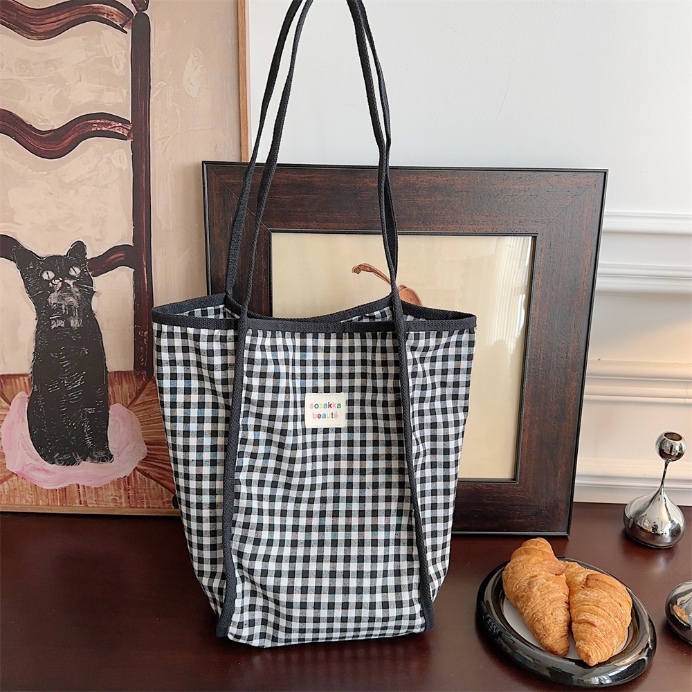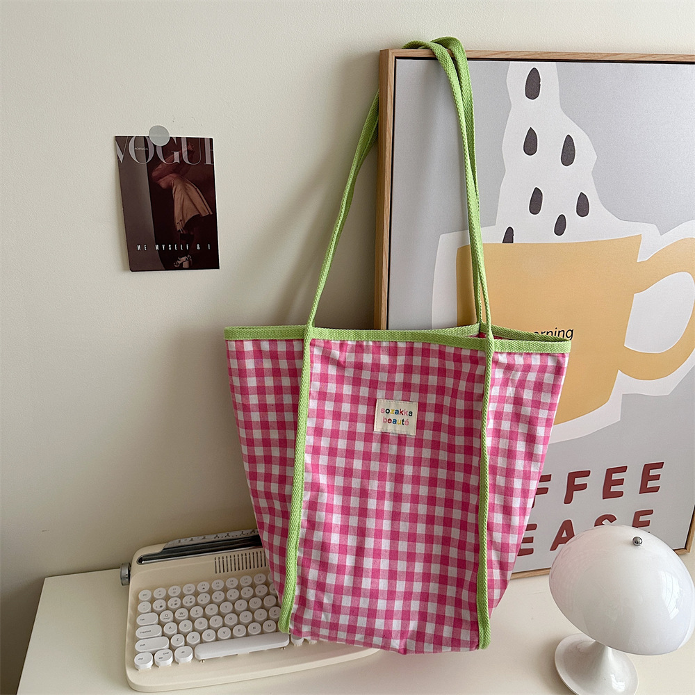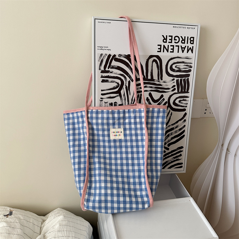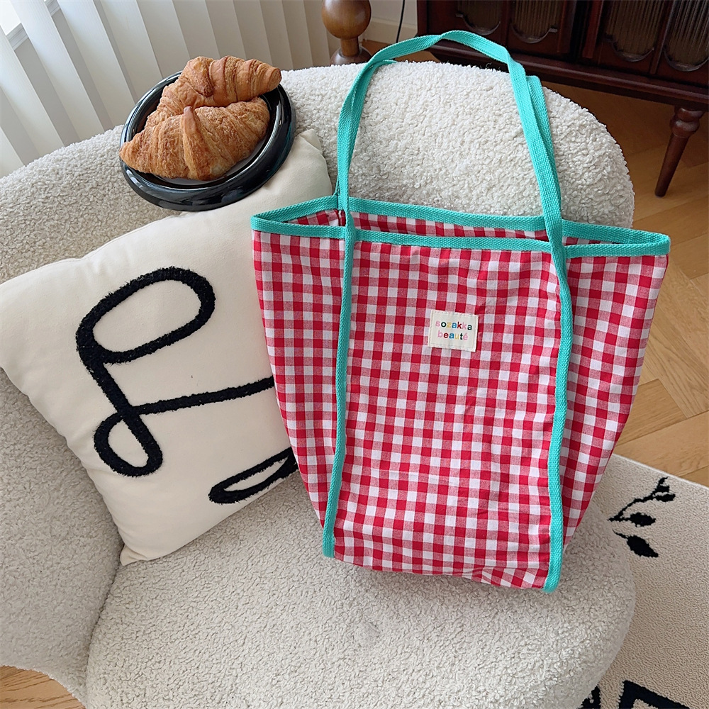 韩版文艺复古红蓝撞色格格多巴胺单肩包手提包通勤帆布包女