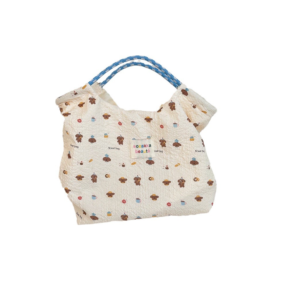压花卡通小狗手拎包女手提单肩帆布袋外出上班通勤包