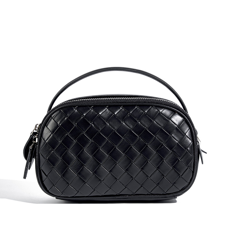 夏天新款真皮手提小方包时尚编织双拉链单肩斜挎小包休闲女包