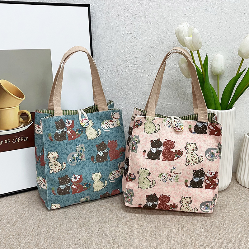 日式帆布时尚轻便小手提包上班族带饭手拎袋饭盒袋外出通勤妈咪包