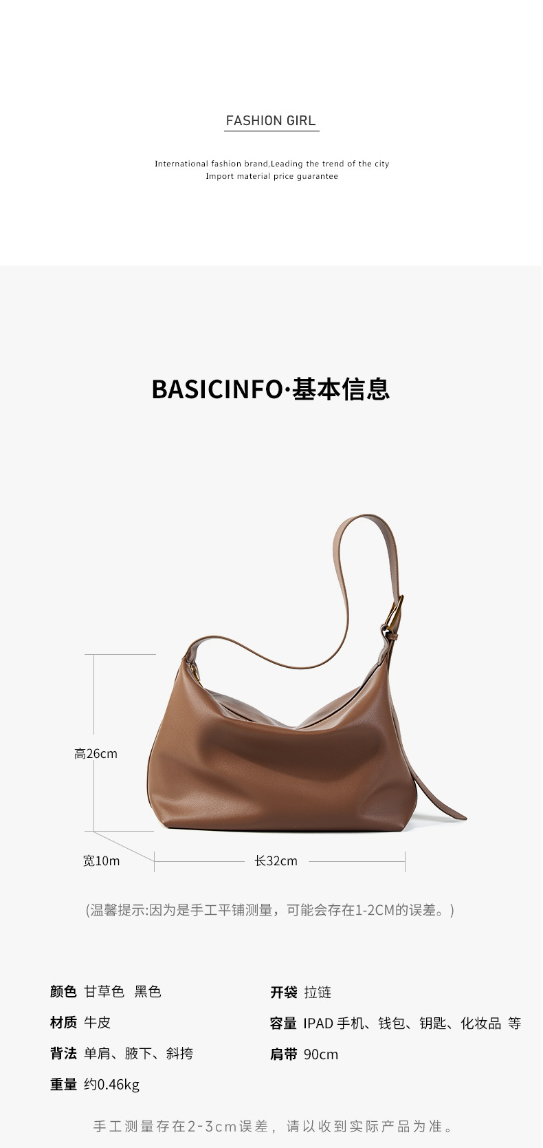 真皮腋下大托特包流浪包女新款牛皮女包通勤大包单肩斜挎女包