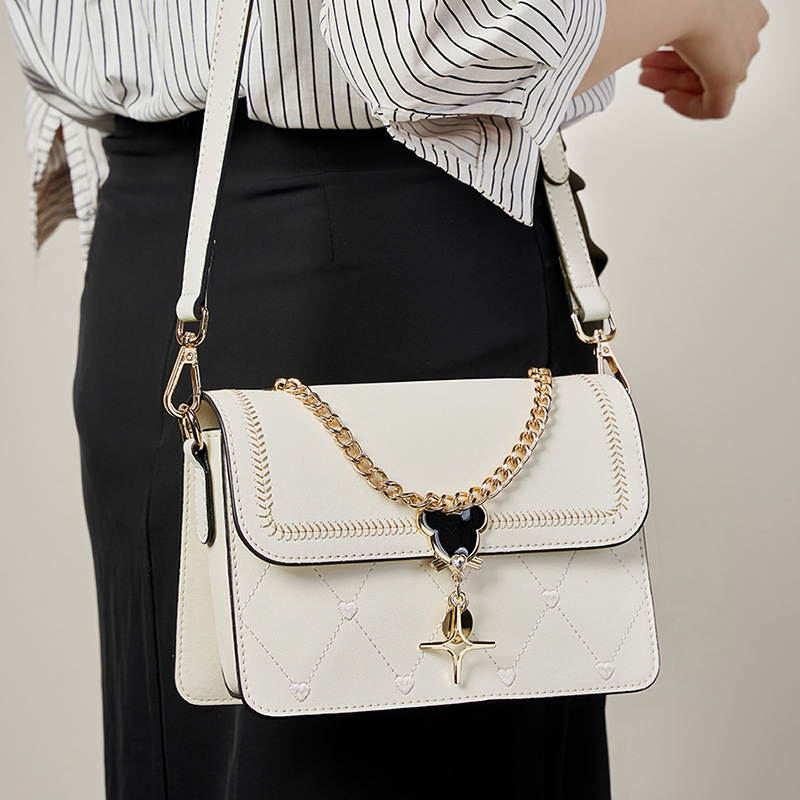 春季女2025新款时尚褶皱包单肩包时尚简约时尚绣线百搭斜挎包女包