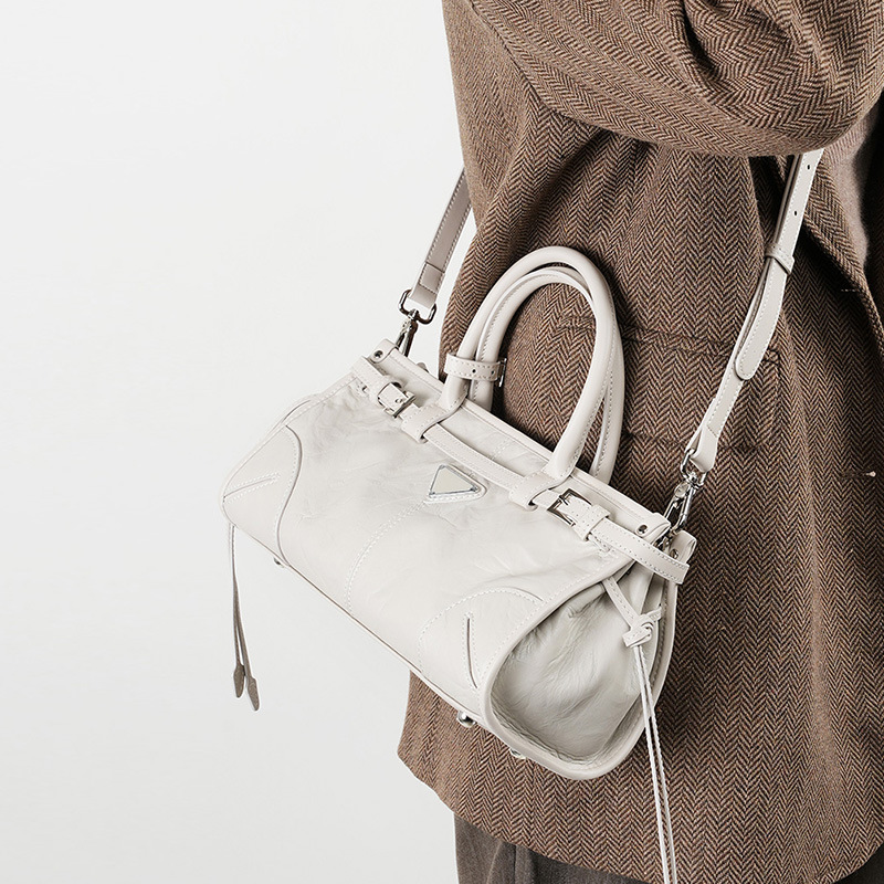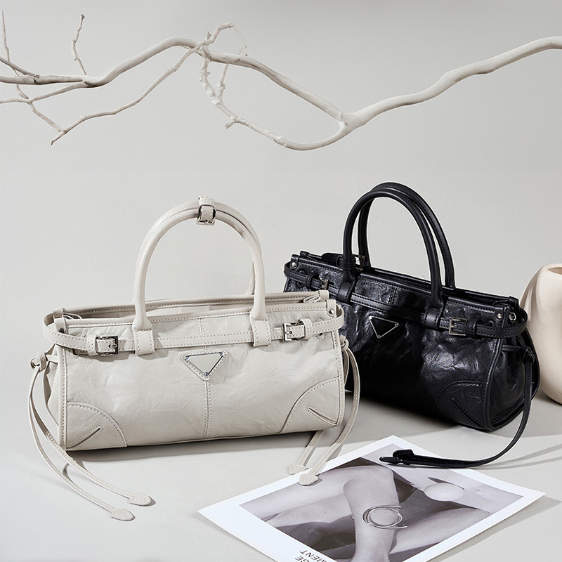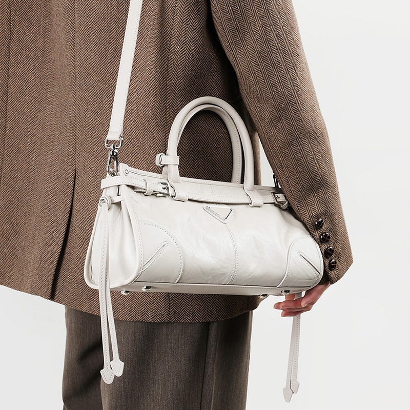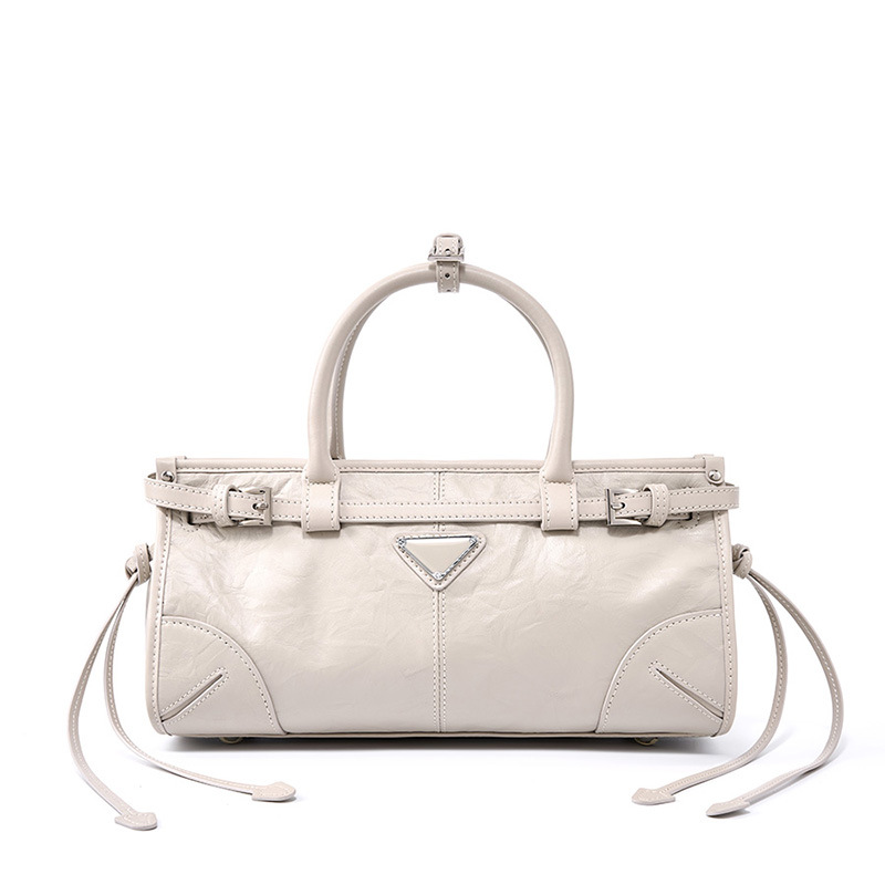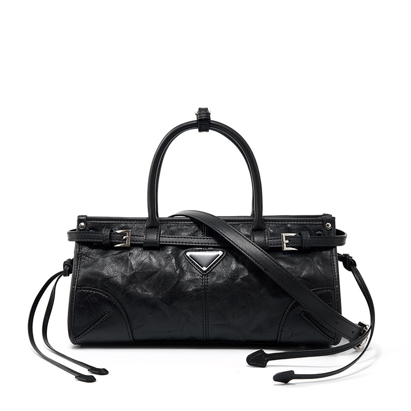 包包女新款头层牛皮通勤波士顿包腋下手提包小众高级感油蜡皮