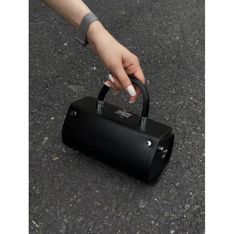 小众设计高级质感暗黑色复古辣妹圆筒包甜酷少女手提包包斜跨