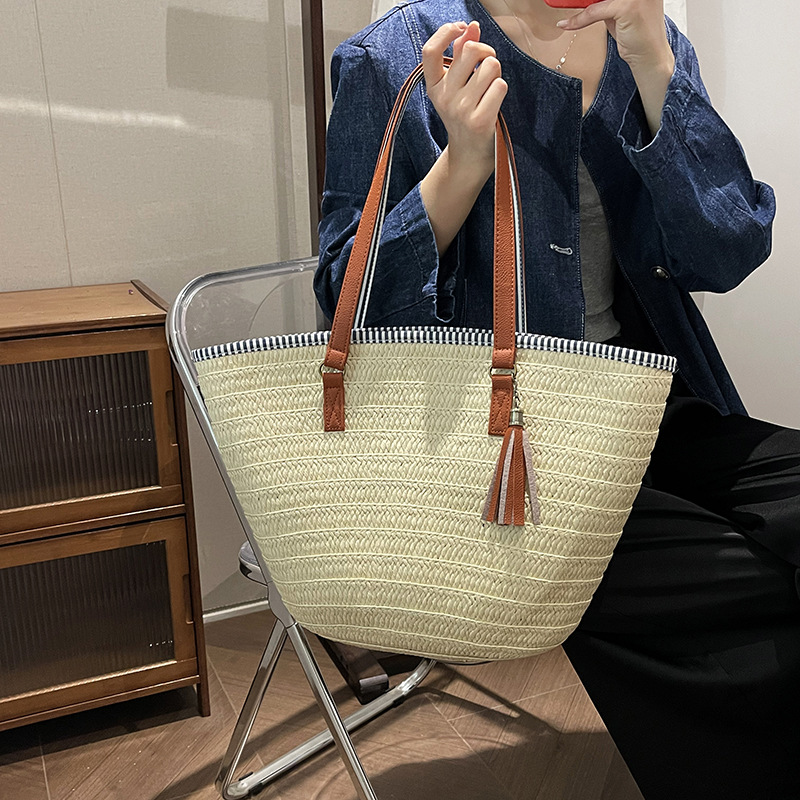 百搭简约单肩草编包新款大容量编织包托特包女海边度假跨境沙滩包