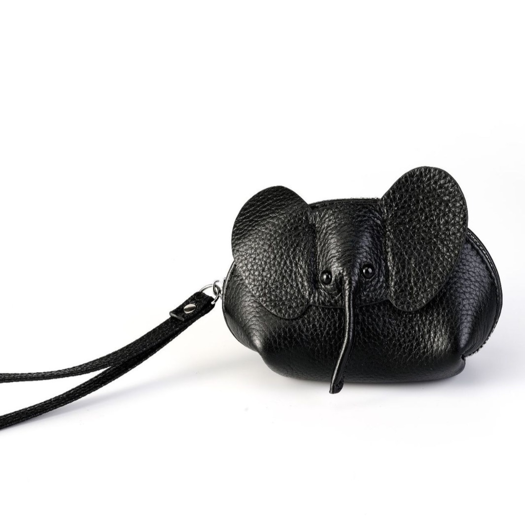 头层牛皮小象零钱包女钥匙包卡包真皮拉链手挽包口红收纳包ins潮