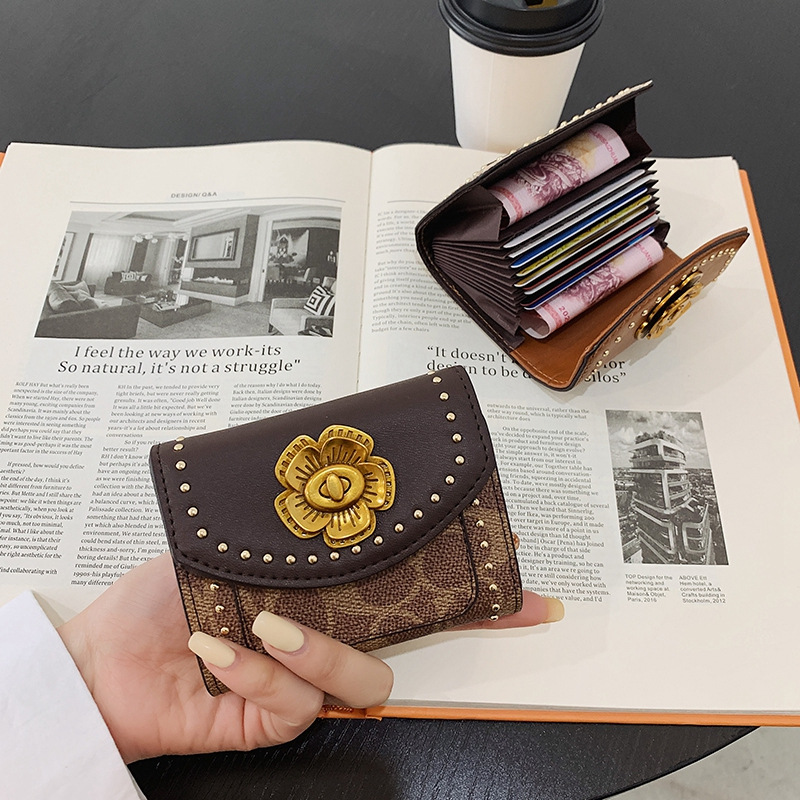 山茶花女士卡包新款爆款铆钉短款零钱包多卡位名片证件包