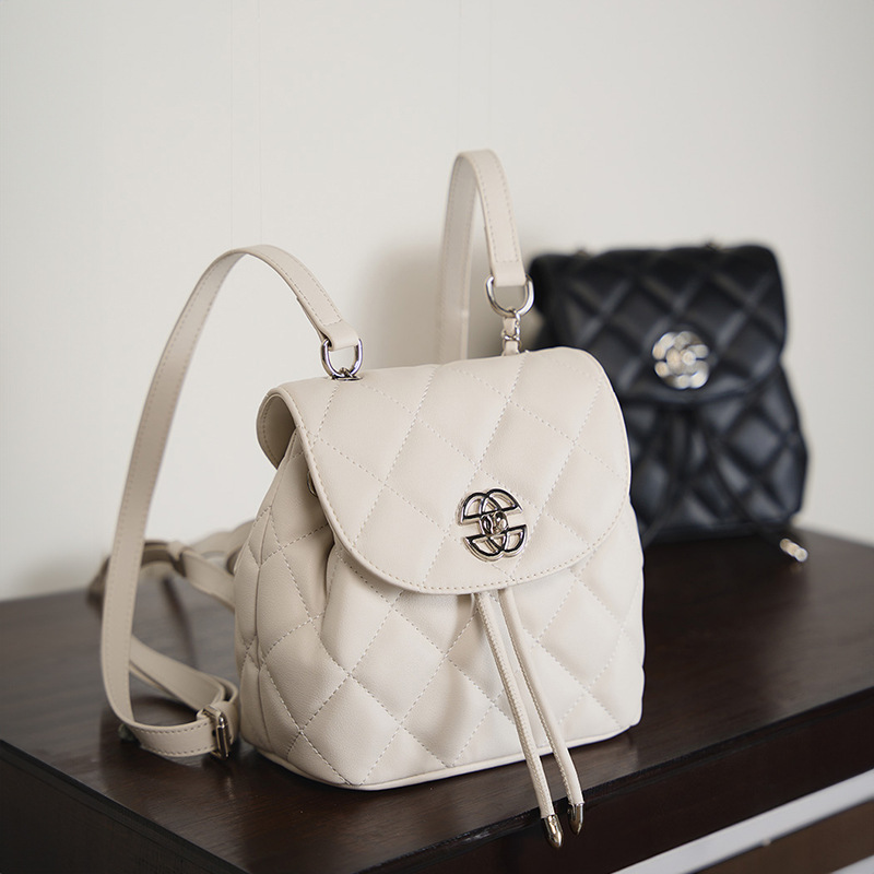 严选韩国小众真皮双肩包女新款时尚双肩包设计感小众大容量包