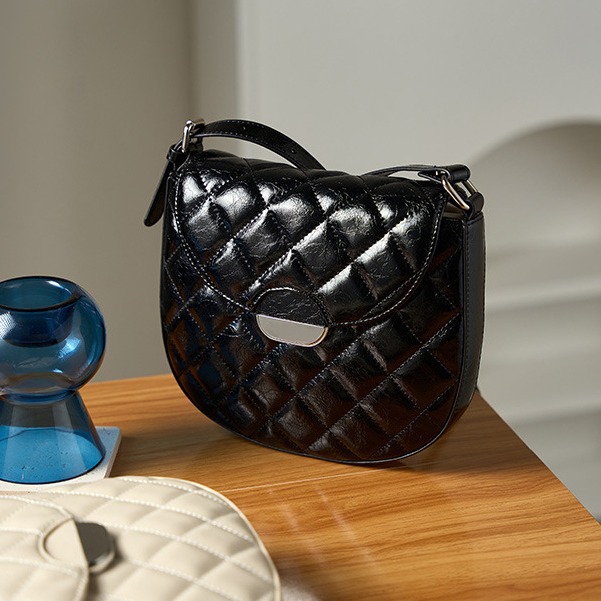 小众猪鼻子半圆马鞍包高级感菱格腋下包新款真皮单肩斜挎包女
