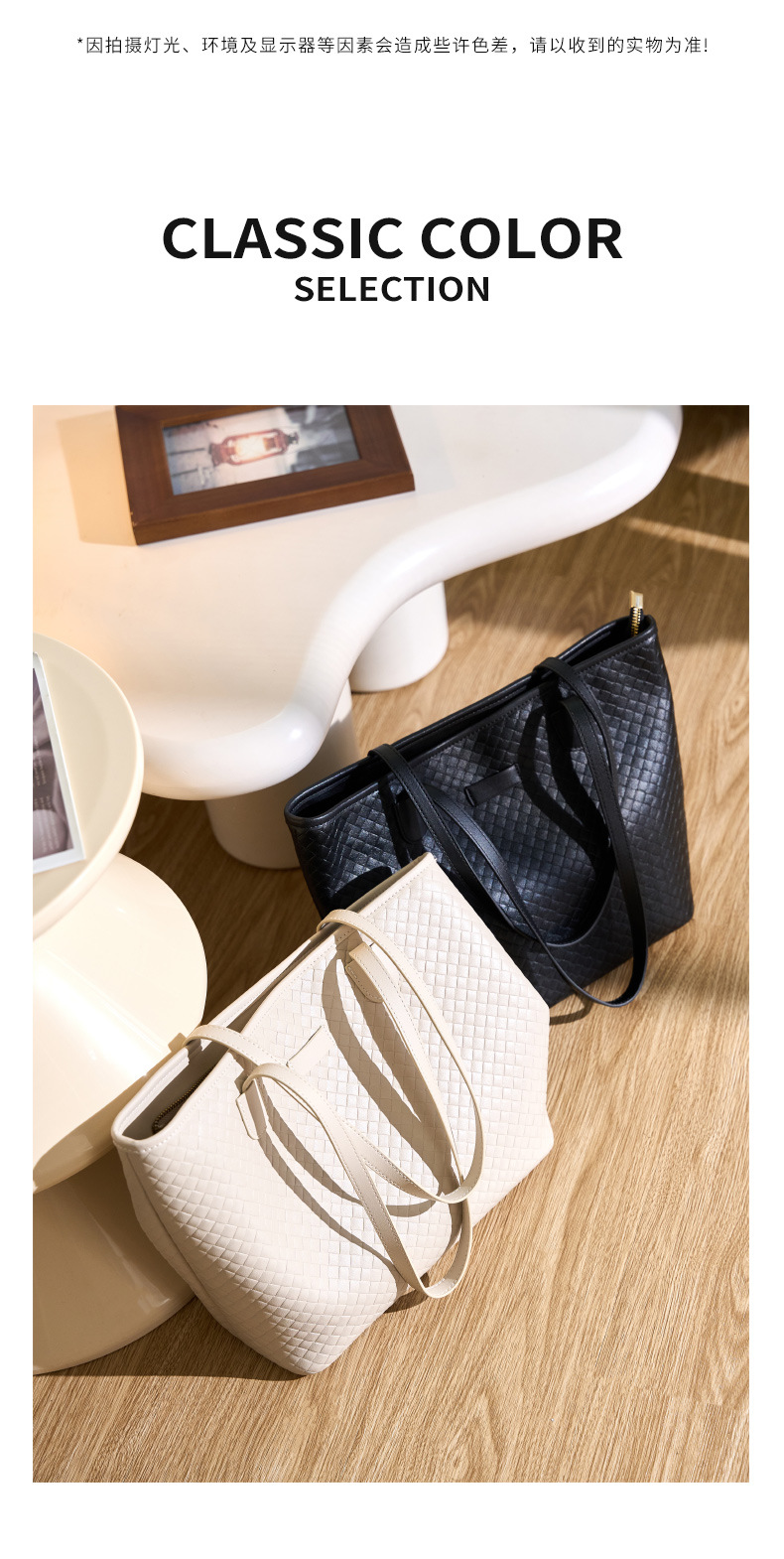 真皮大容量托特女包包新款时尚质感单肩腋下包潮通勤编织包包