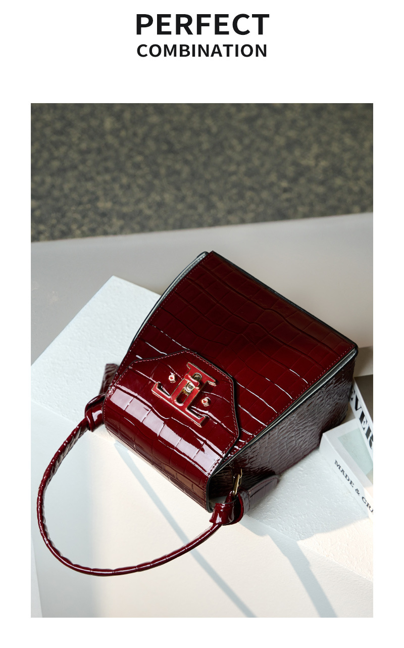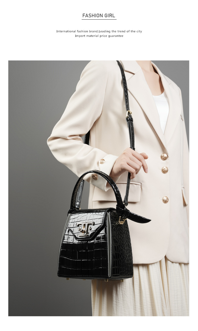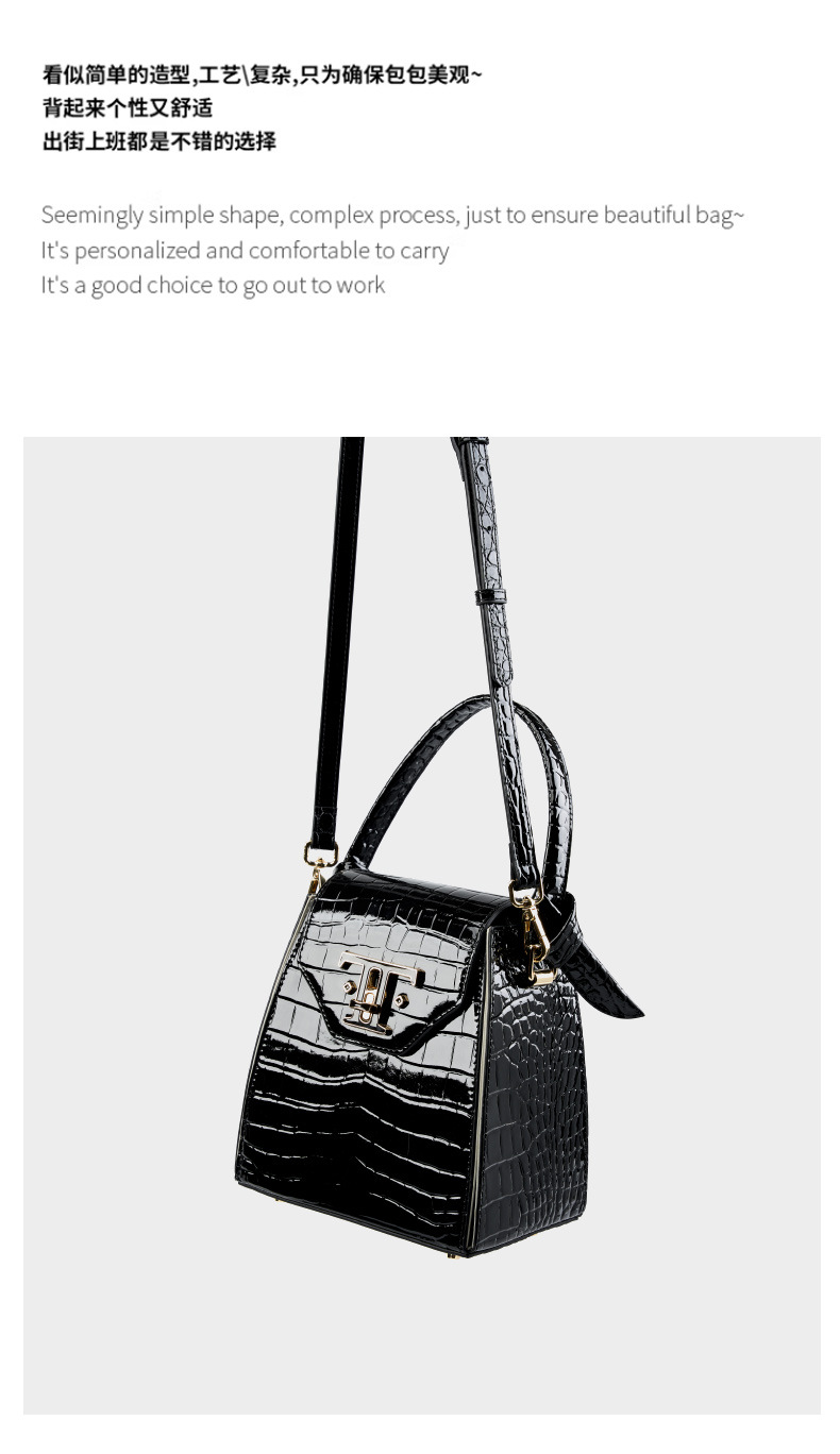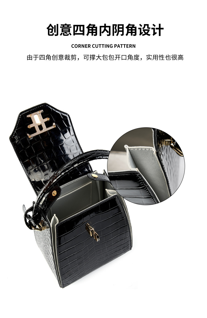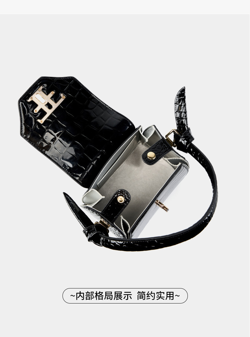 秋新款真皮小众设计烟盒包轻奢高级感鳄鱼纹手提斜跨盒子女包