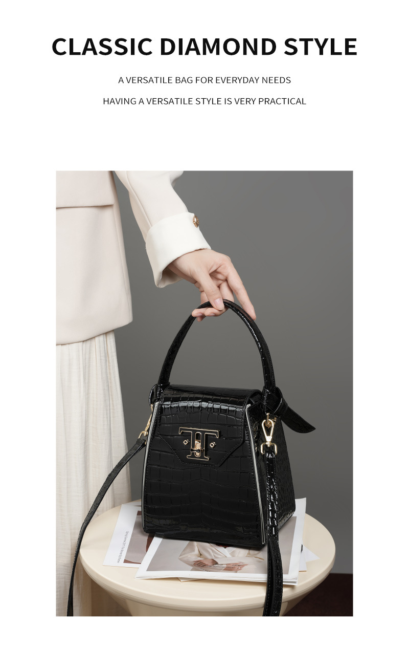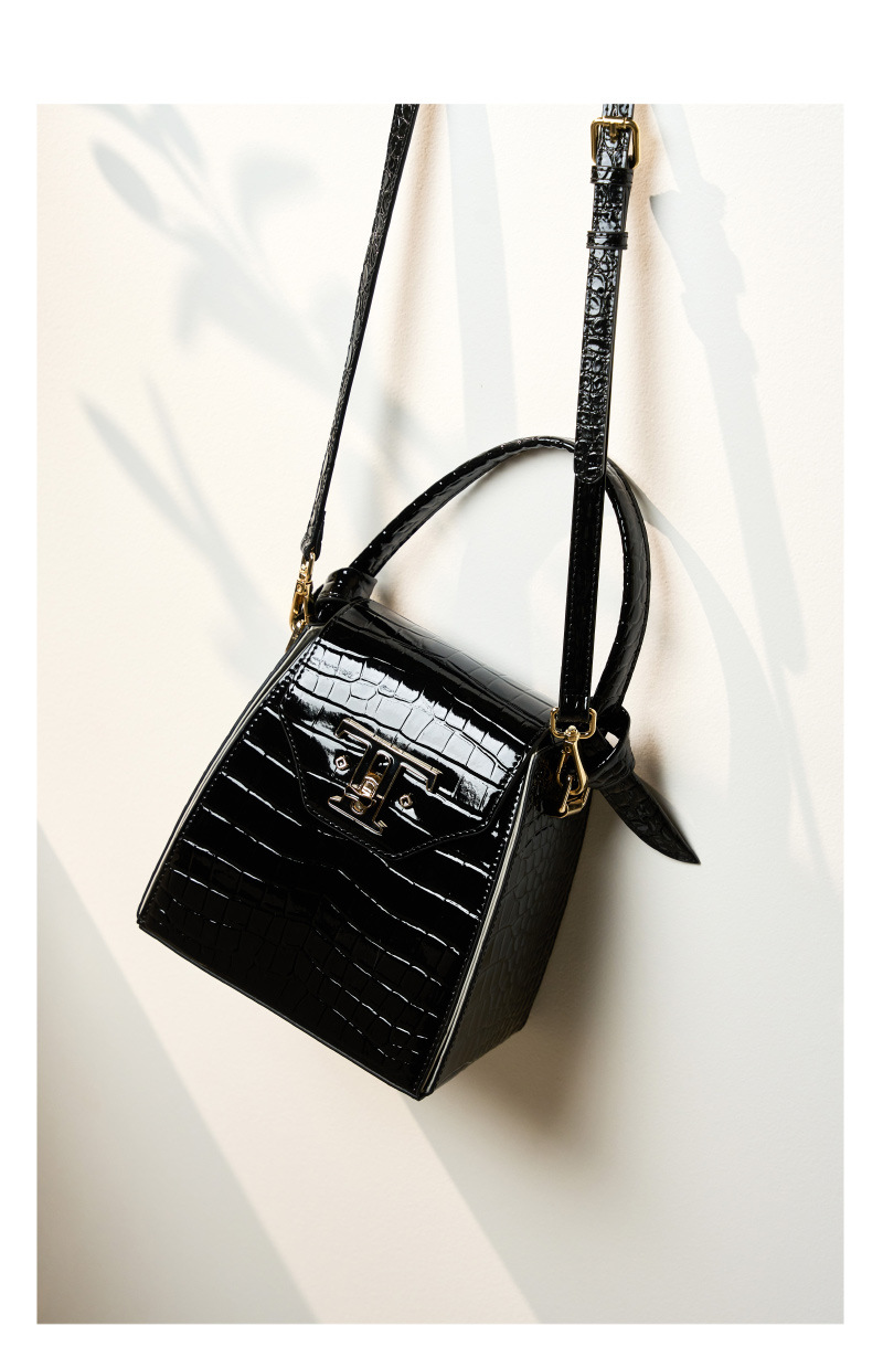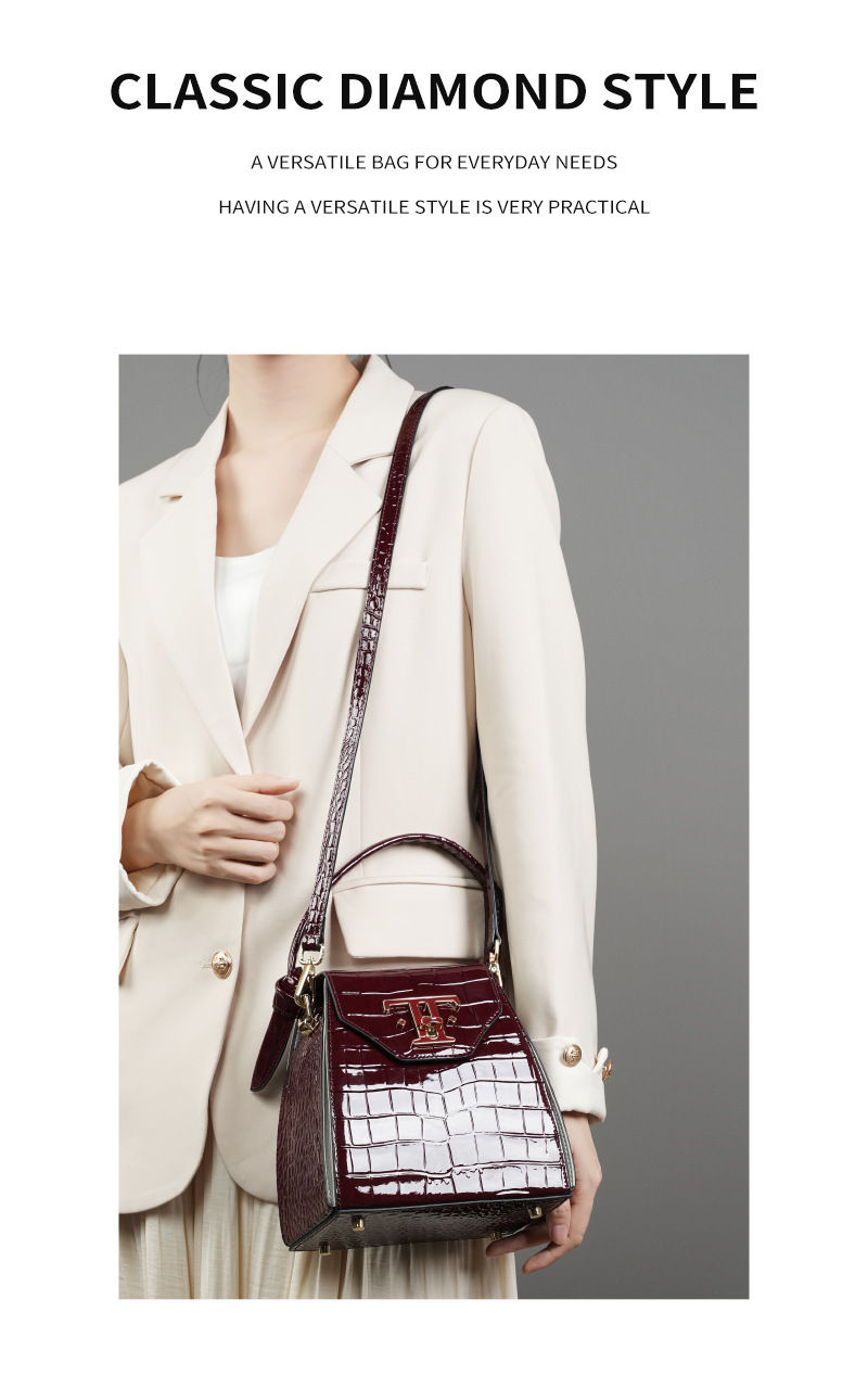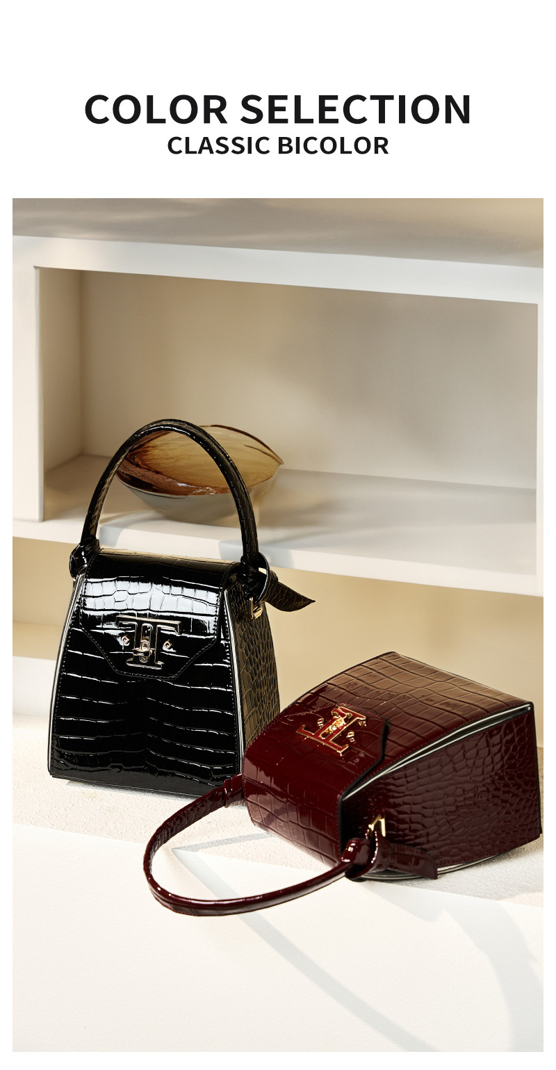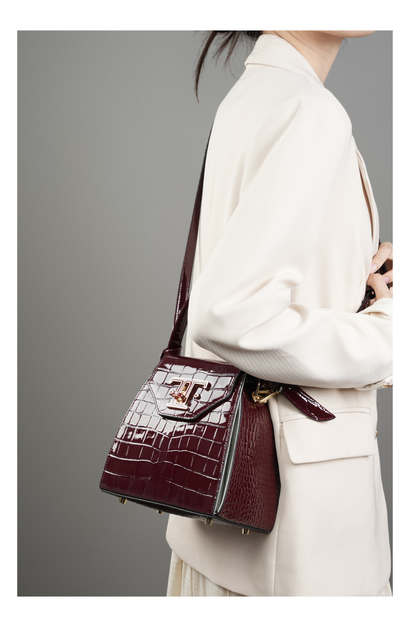 秋新款真皮小众设计烟盒包轻奢高级感鳄鱼纹手提斜跨盒子女包