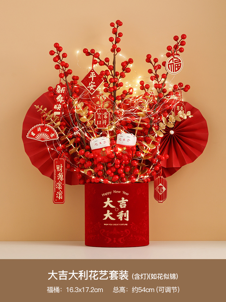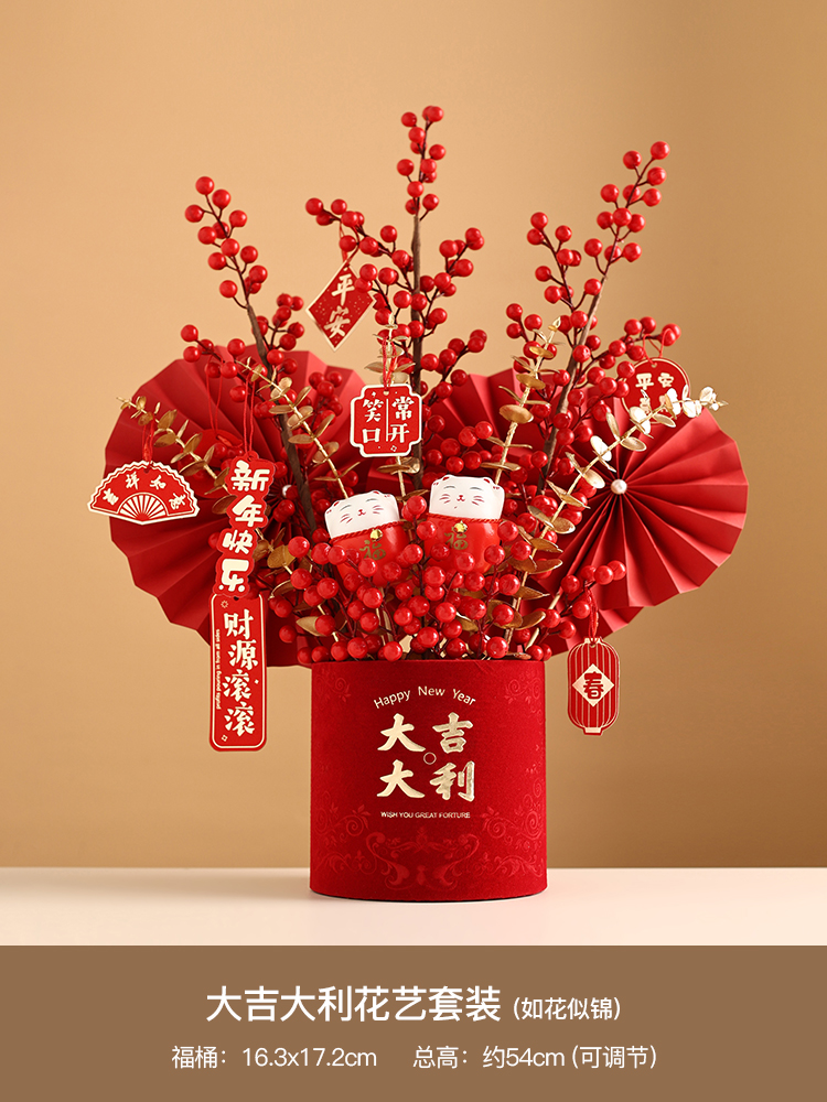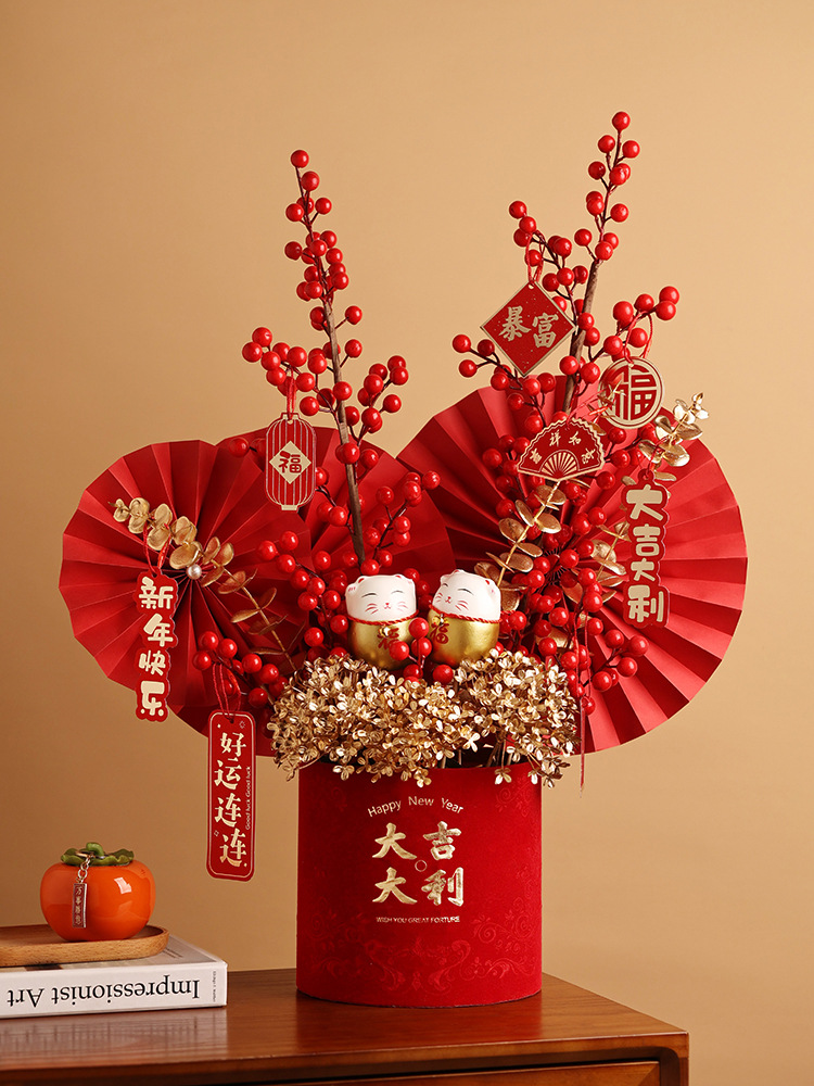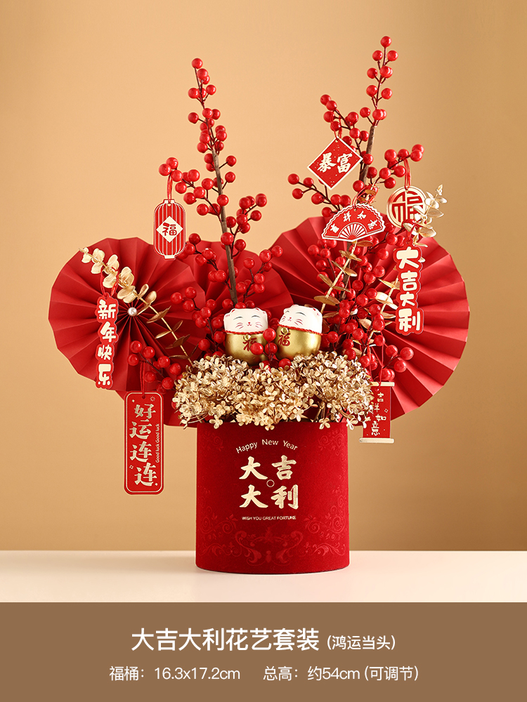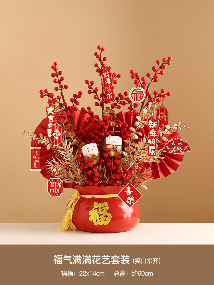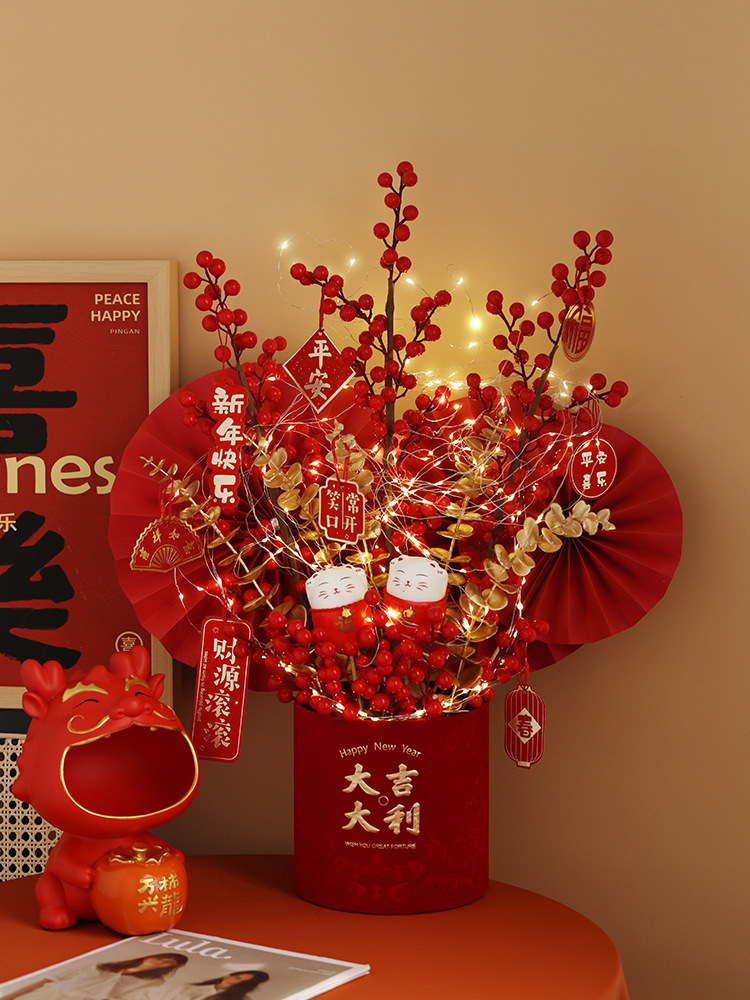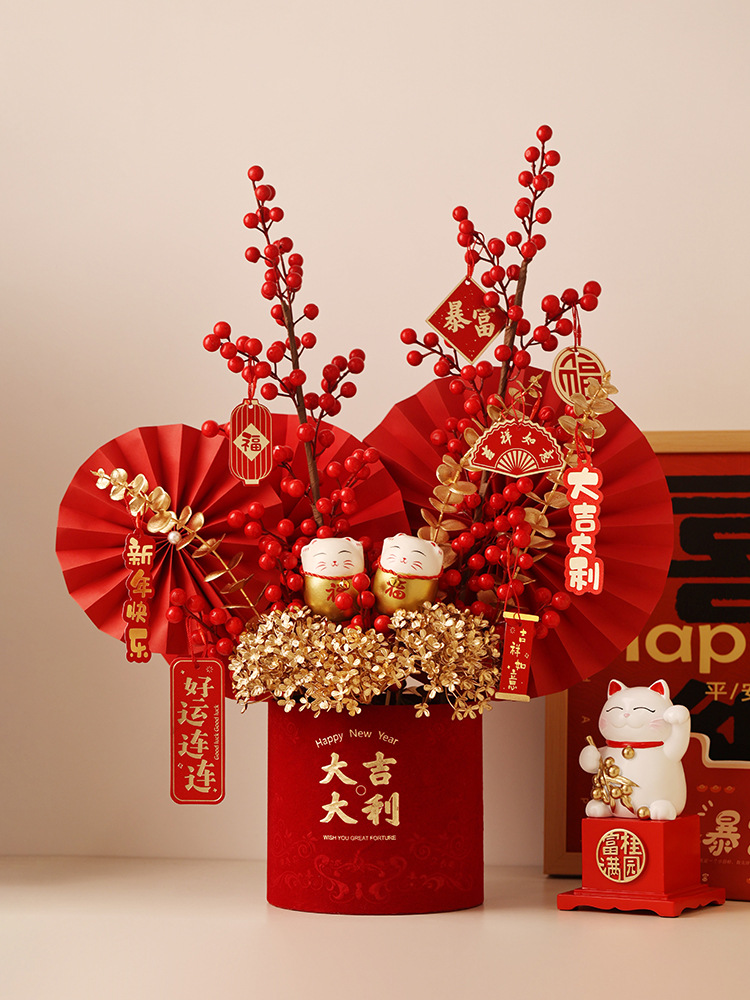 贝汉美新年过年春节年宵花摆件家居客厅布置龙年福桶电视柜装饰品