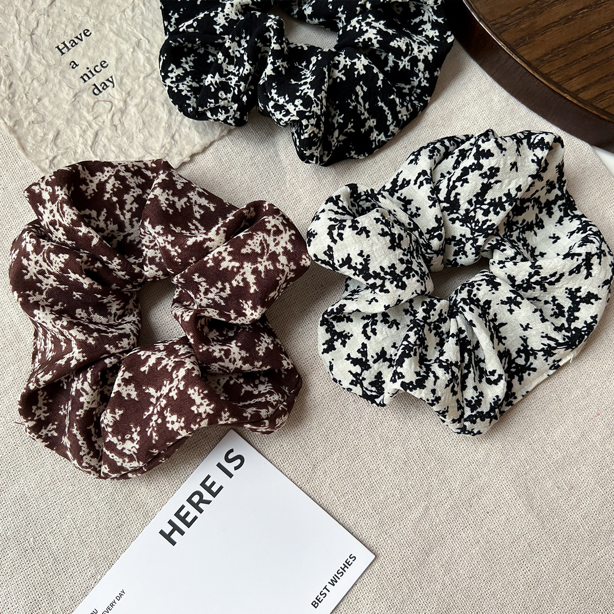 法式复古碎花气质简约发饰头绳手工布艺女百搭丸子头大肠发圈