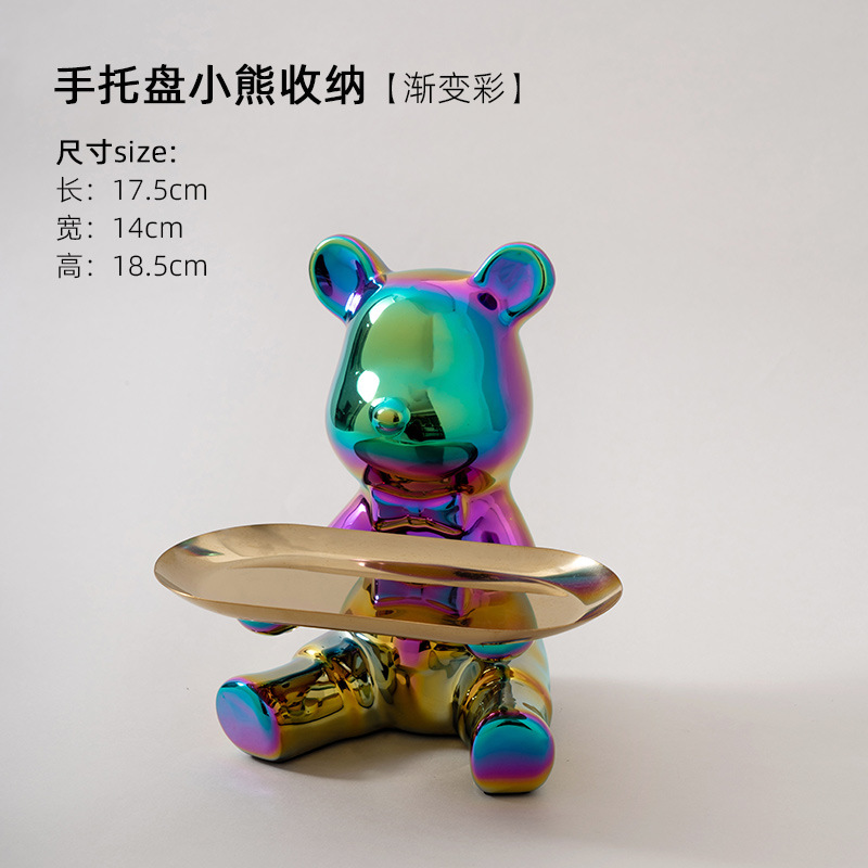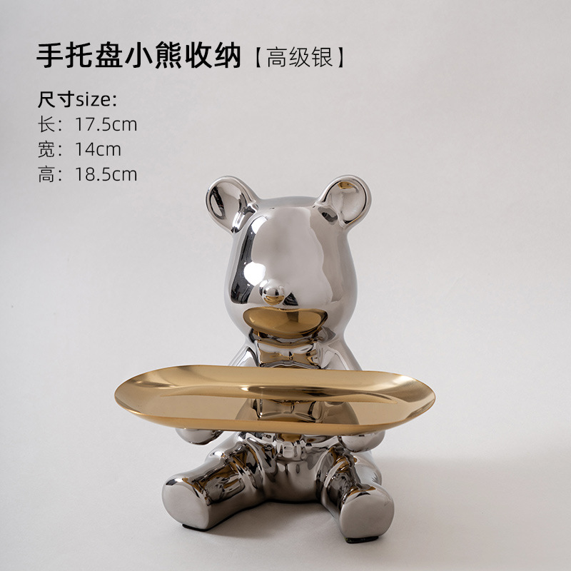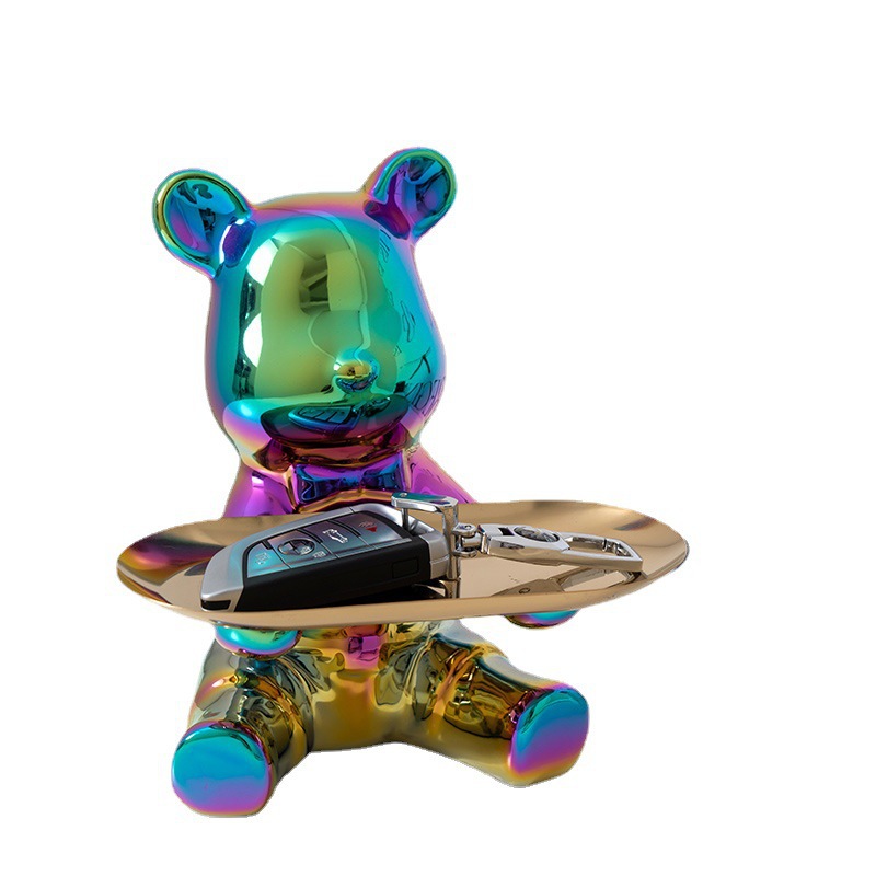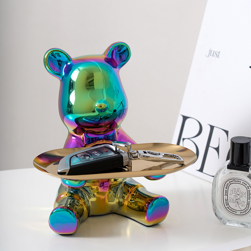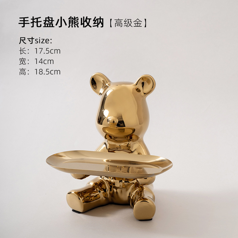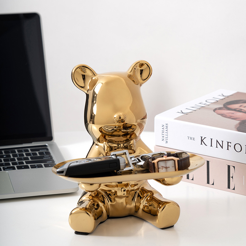 暴力熊钥匙收纳玄关家居装饰品摆件托盘陶瓷存钱罐客厅轻奢酒柜