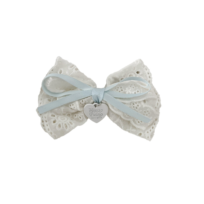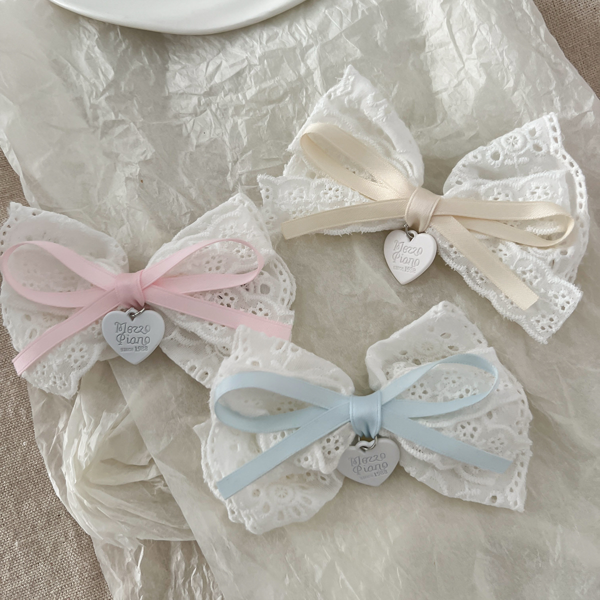 甜美公主风仙气发夹鸭嘴夹白色蕾丝双层蝴蝶结爱心吊坠边夹