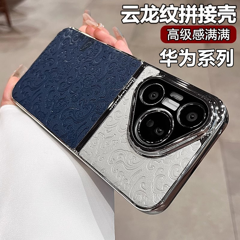 华为Pura70启航龙纹手机壳拼色皮质荣耀300防摔磨砂Mate60pro