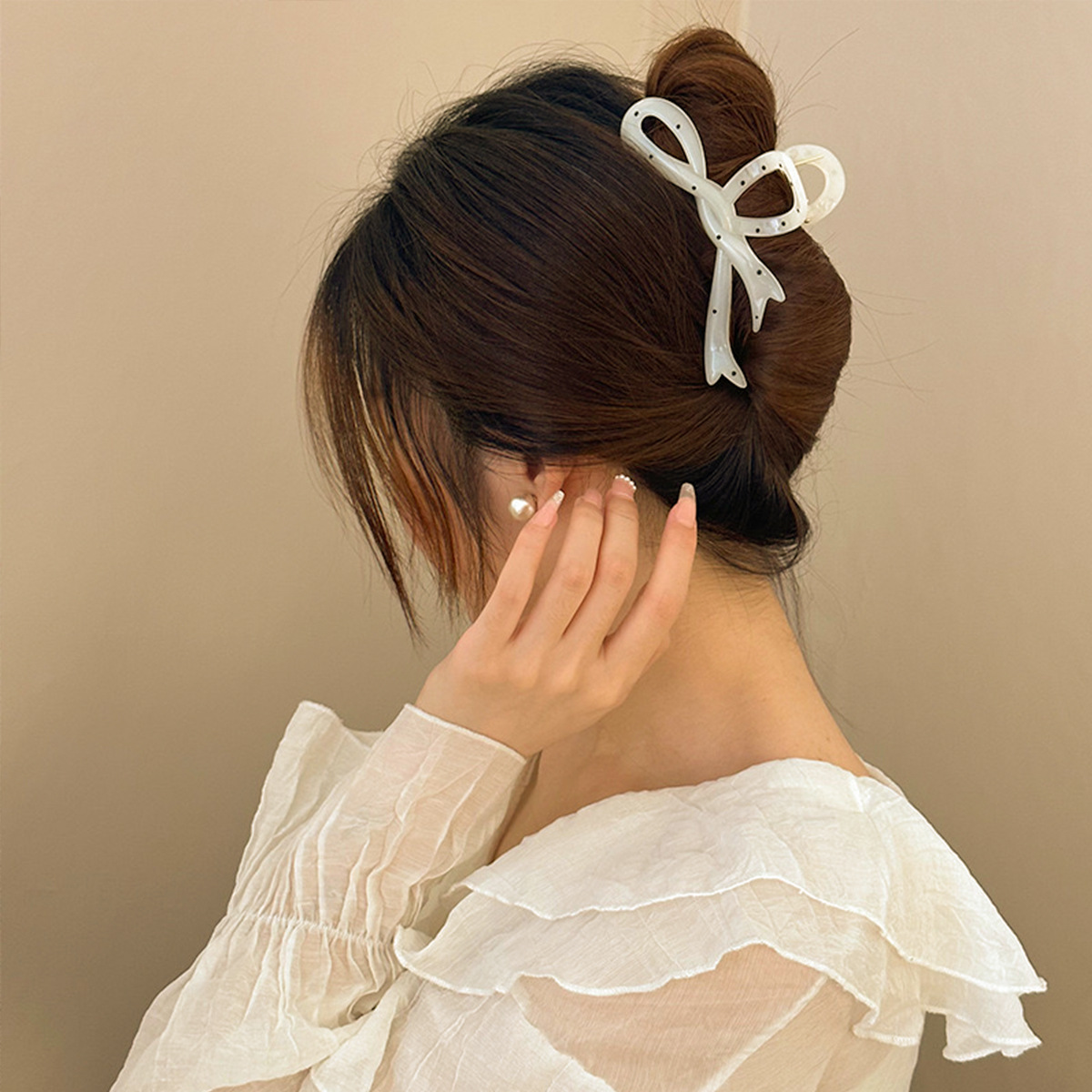 韩版百搭波点鲨鱼夹女高级感时尚蝴蝶结黑白后脑勺大号抓夹