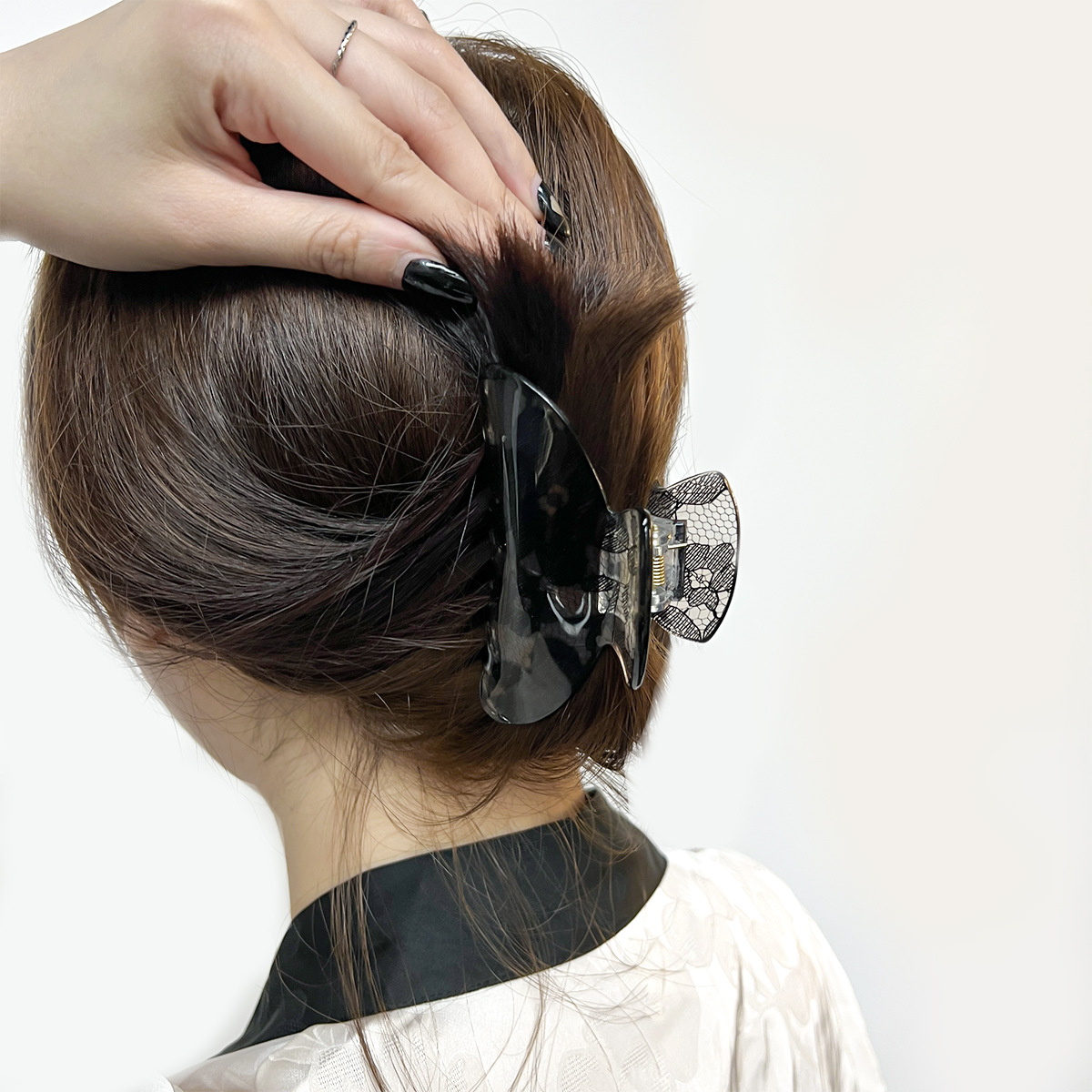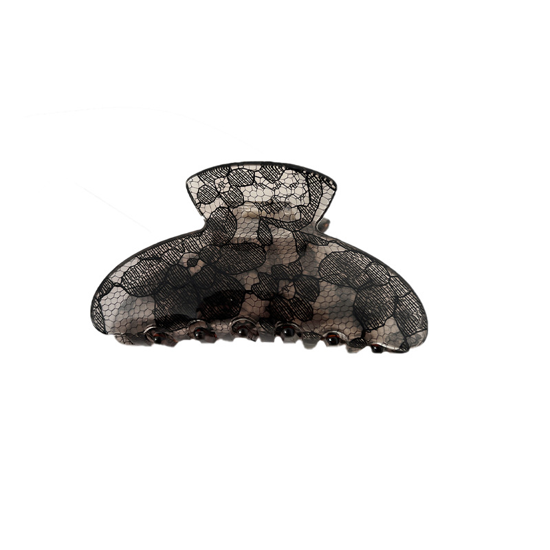 新款花纹高级感鲨鱼夹发夹蕾丝印花法式优雅后脑勺盘发抓夹