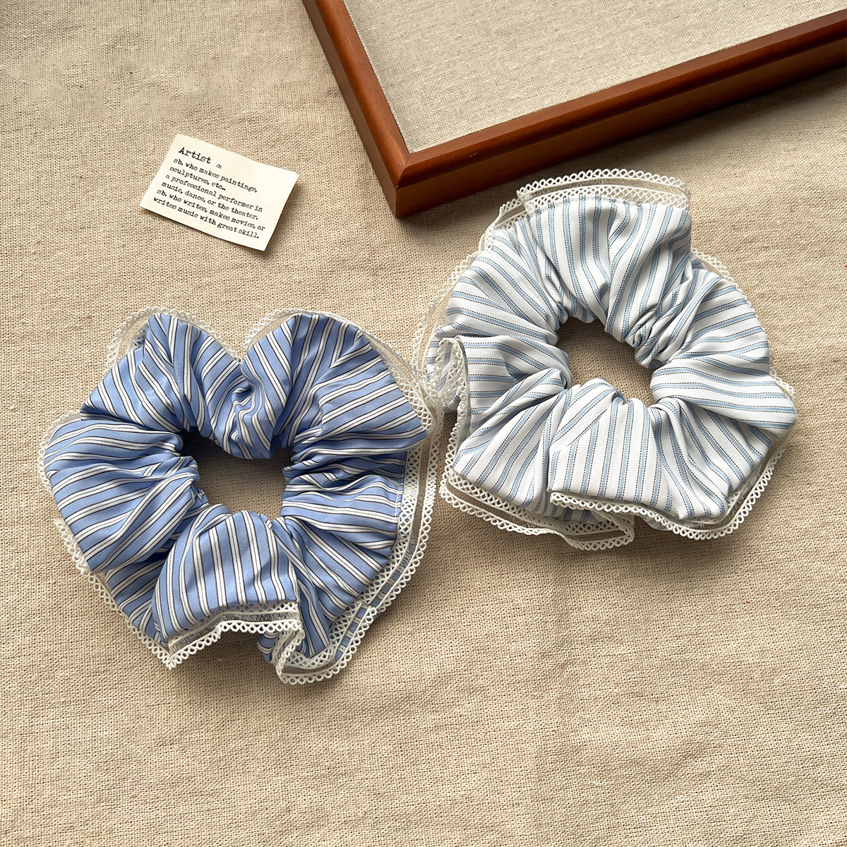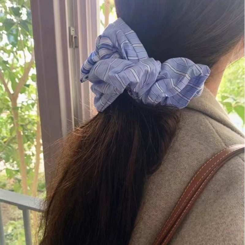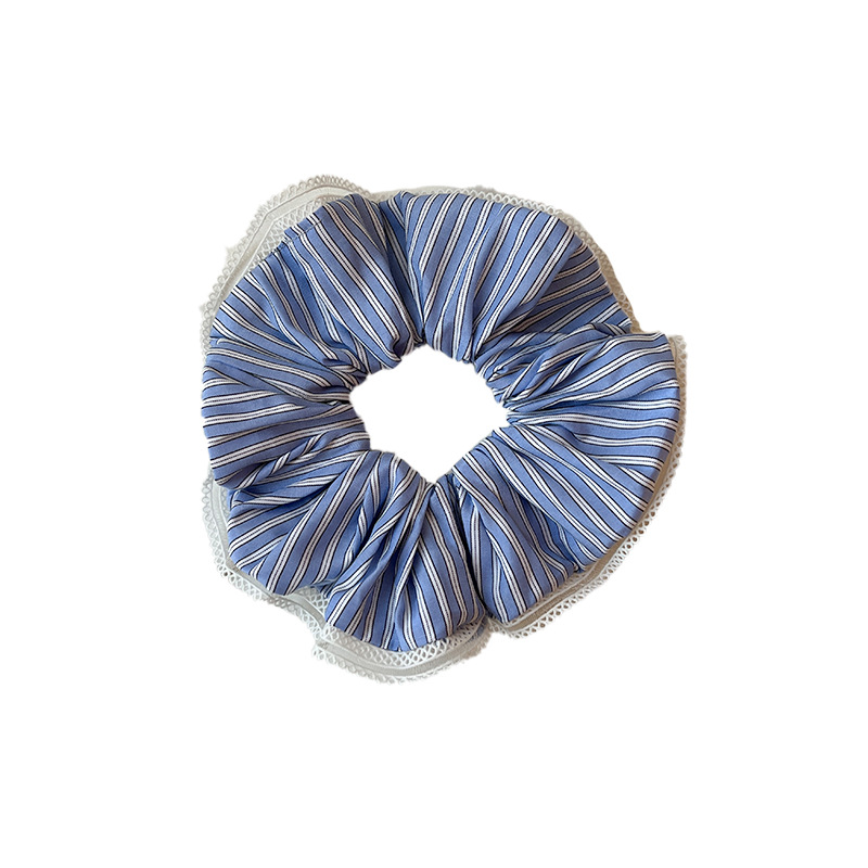 韩版夏季高弹力蕾丝边发饰头绳女清新甜美条纹布艺大肠发圈