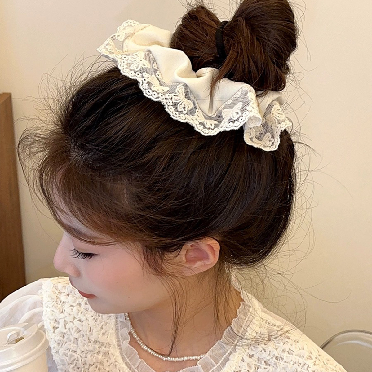 法式浪漫蕾丝镂空复古发饰头绳布艺复古高级感气质大肠发圈