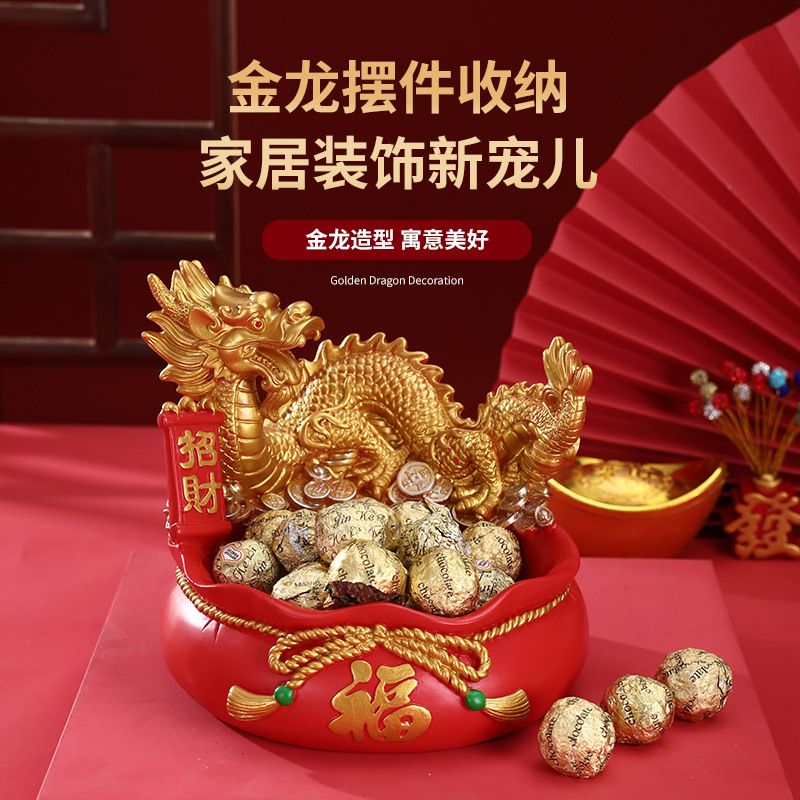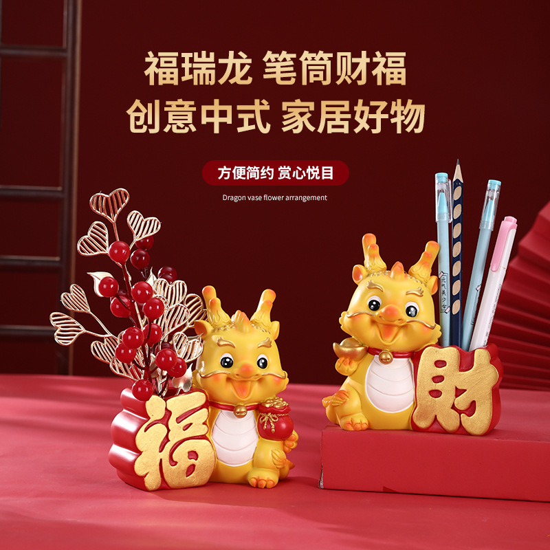 龙年新款树脂工艺品客厅酒柜花插玄关钥匙收纳桌面摆件前台装饰品