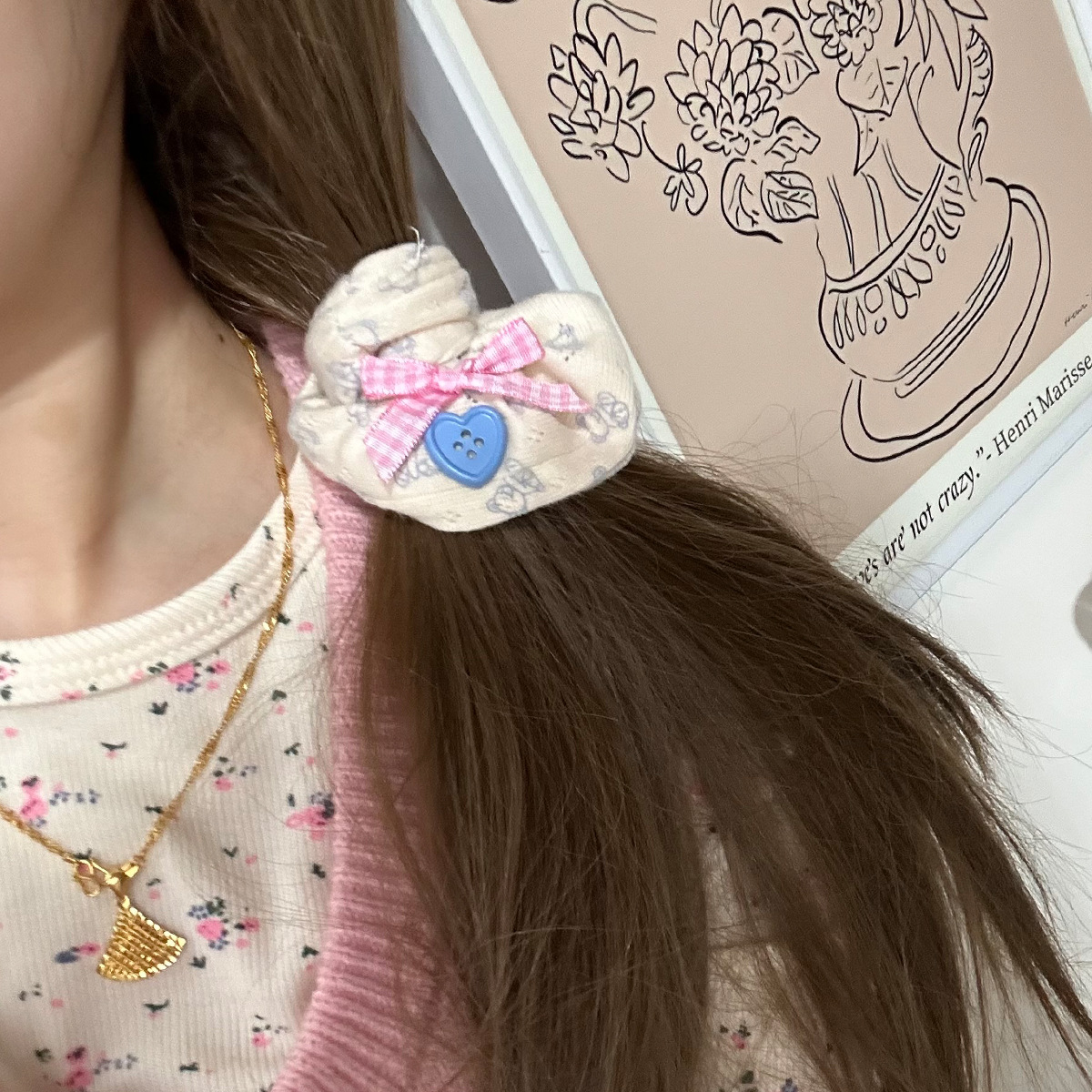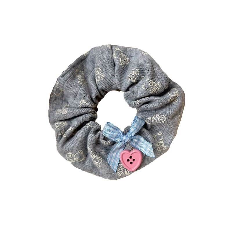 高颜值可爱小熊印花头饰女头绳高弹力布艺爱心纽扣大肠发圈