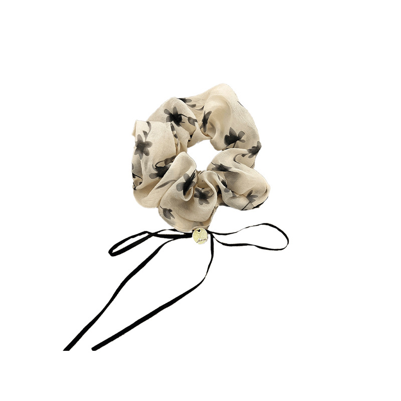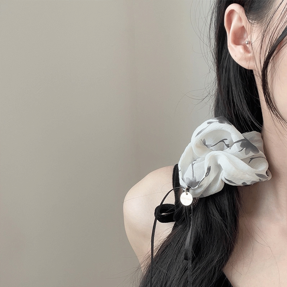 复古高级感盘发马尾头绳发饰女国风水墨画印花飘带大肠发圈