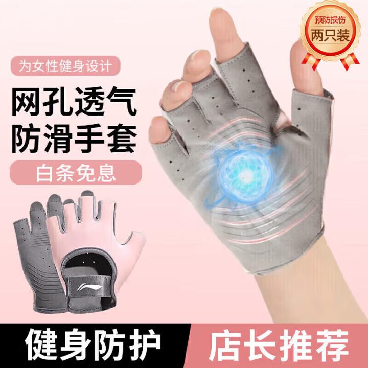 LININ健身手套女运动骑行半指护手透气防滑耐磨单杠哑铃训练器械防起茧