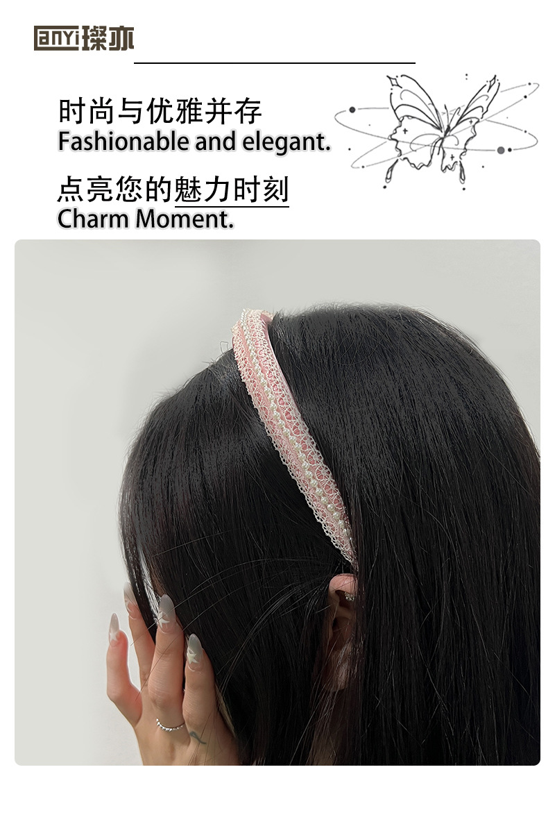 韩版小香风蕾丝布艺发饰头箍海绵甜美窄版百搭气质清新发箍