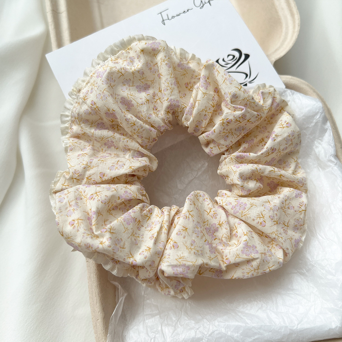 韩版百搭碎花蕾丝边发饰女头绳丝滑布艺高级感马尾大肠发圈