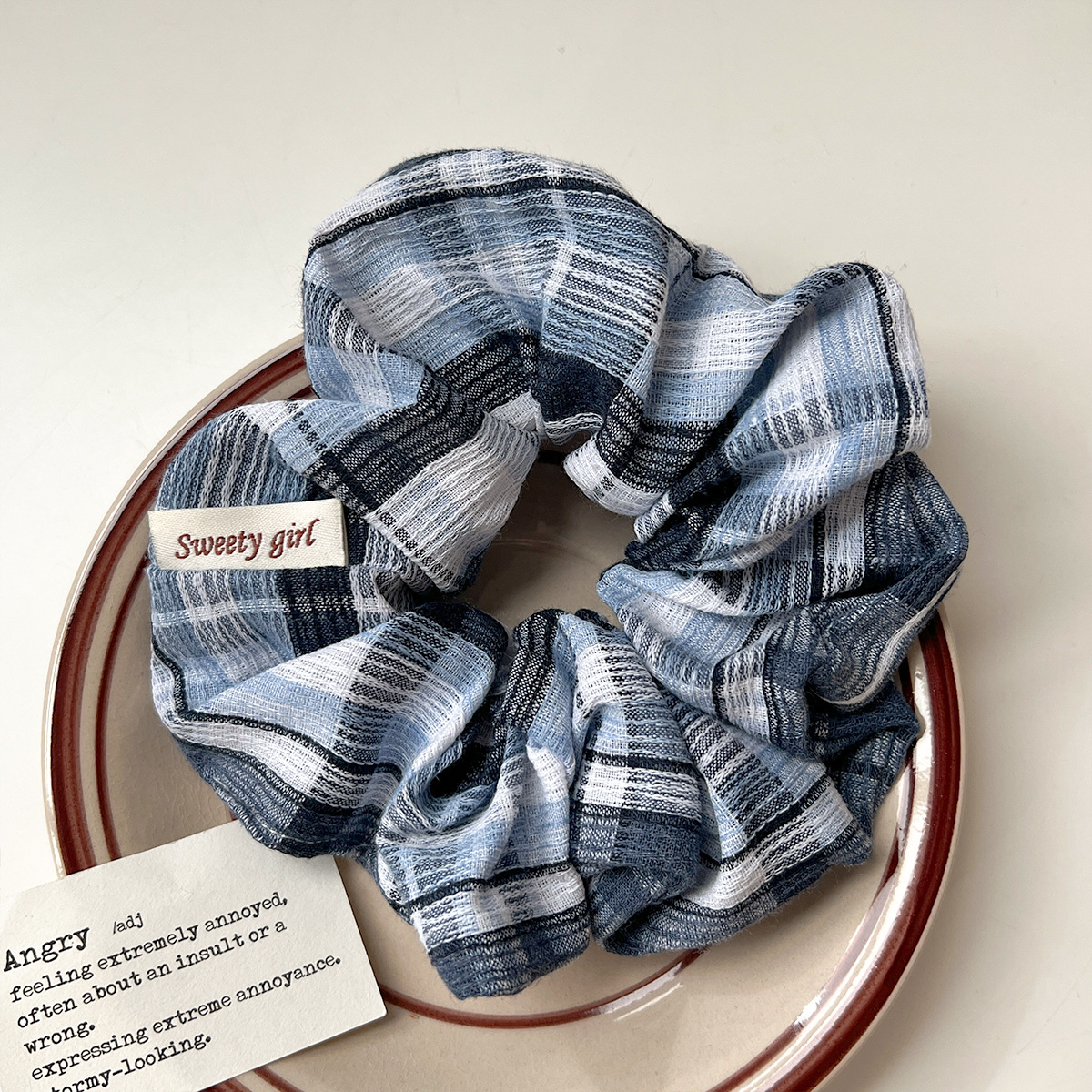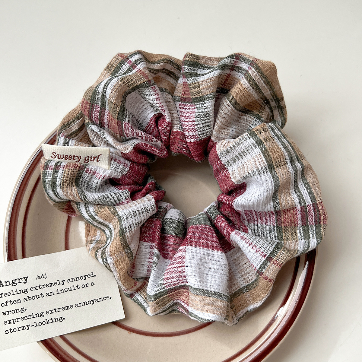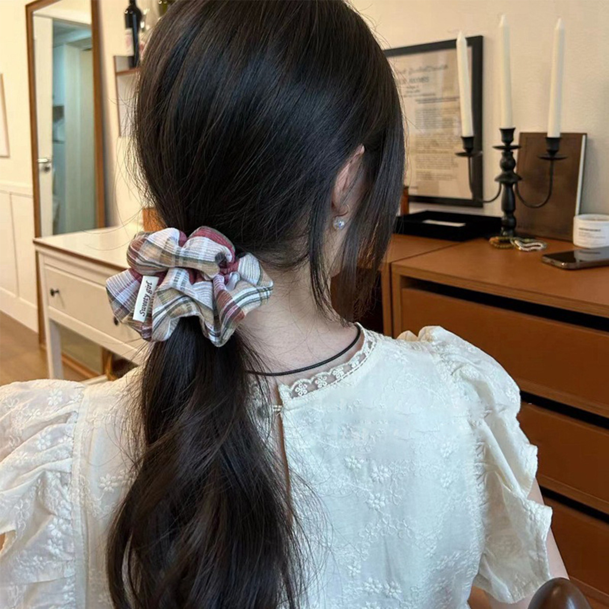 韩版优雅时尚简约百搭格子发饰头绳高弹力气质布艺大肠发圈