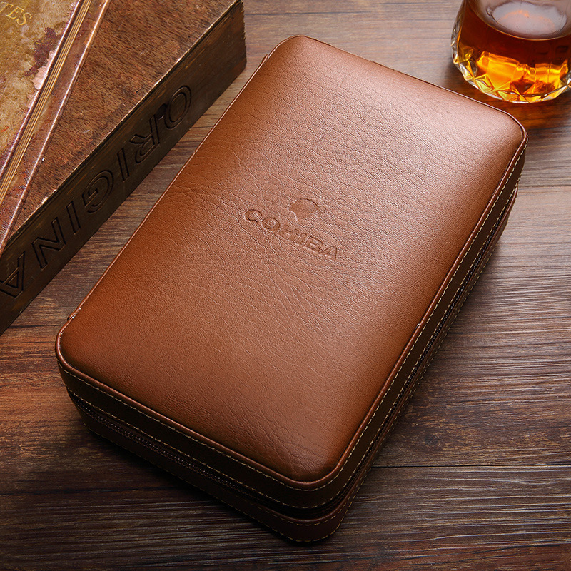 雪茄保湿盒便携随身雪茄包四支装雪茄剪打火机工具套装烟盒