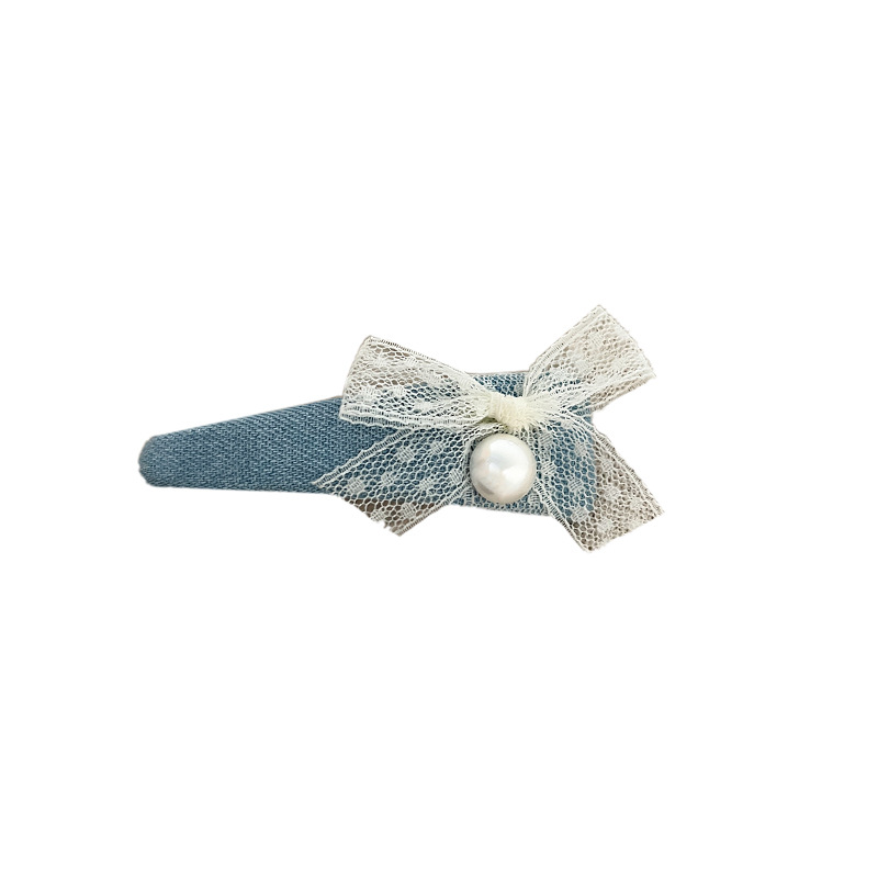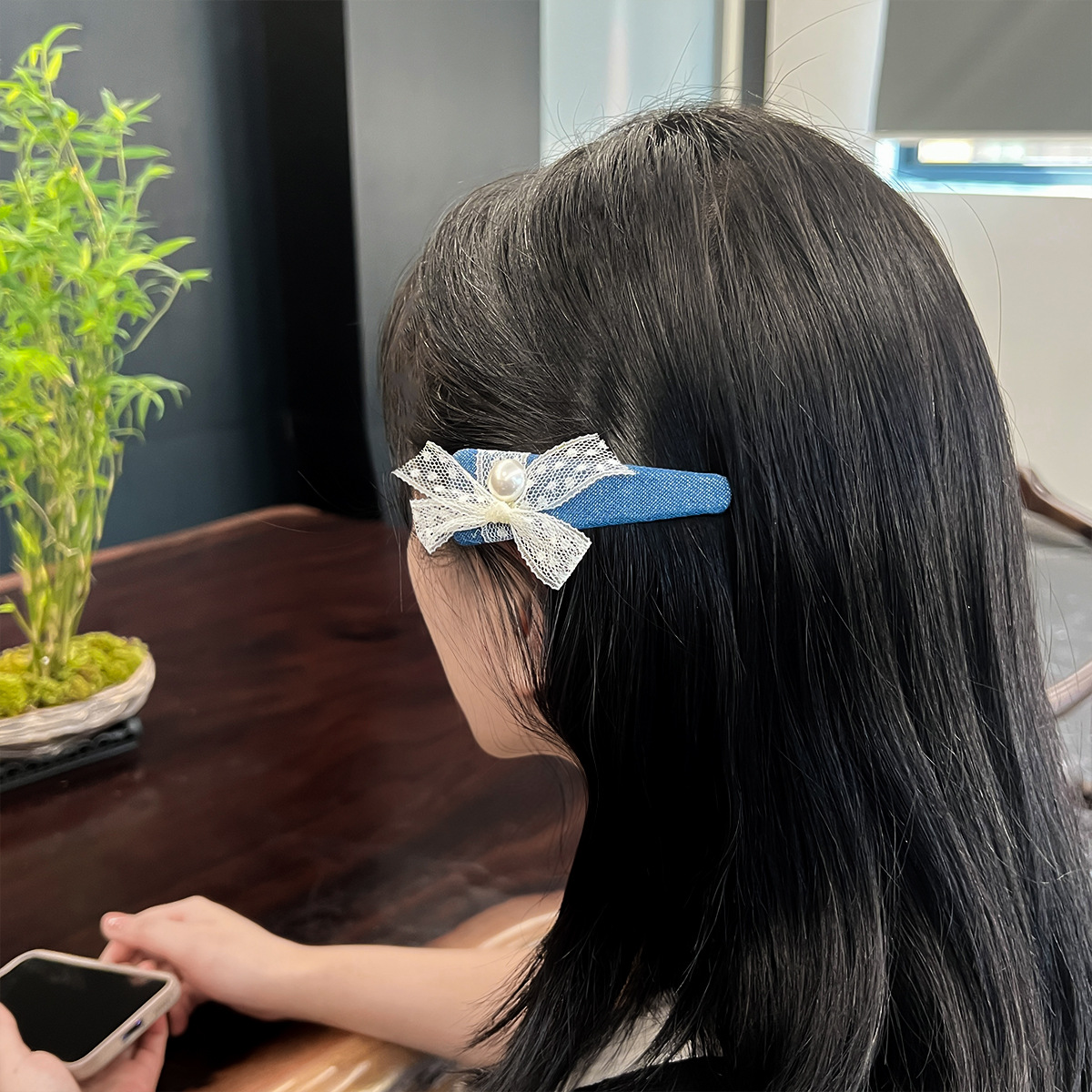 韩式韩版甜美气质蓝色发夹BB夹牛仔珍珠蝴蝶结蕾丝碎发边夹