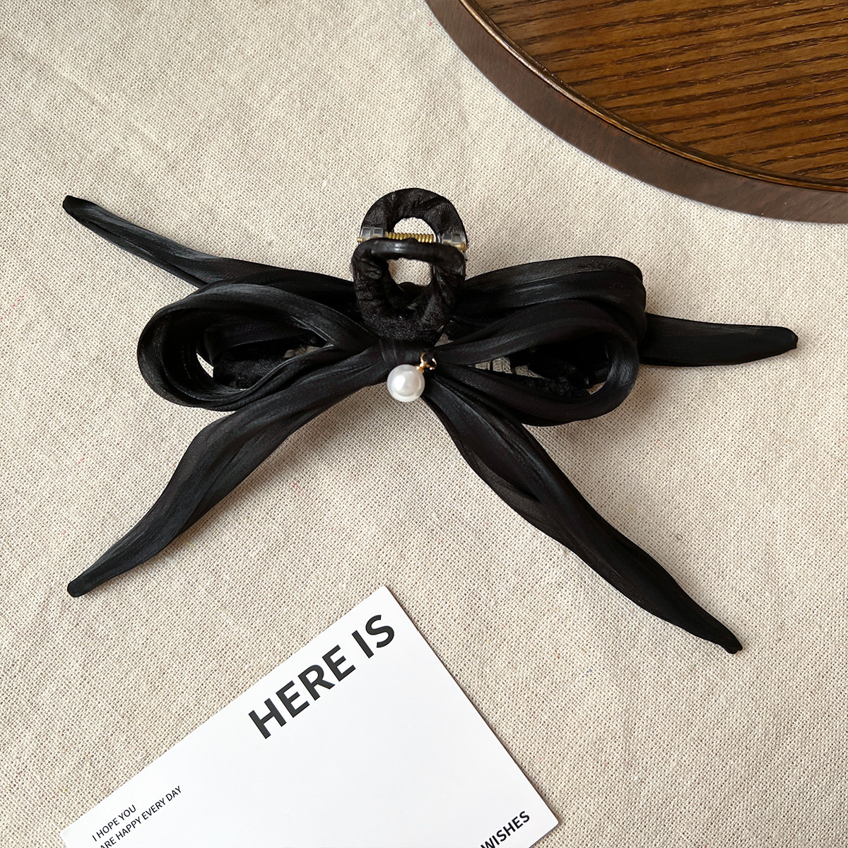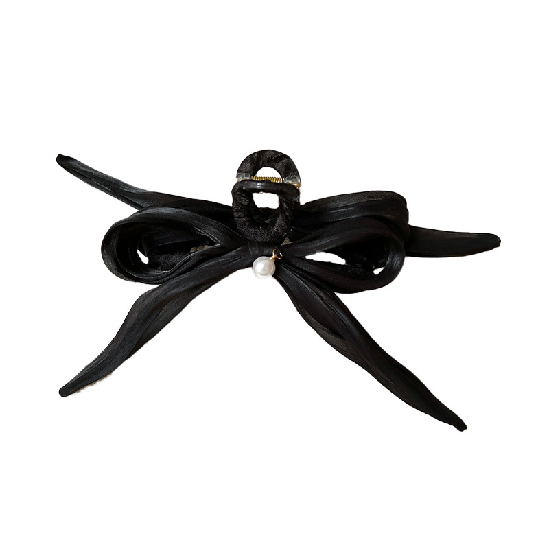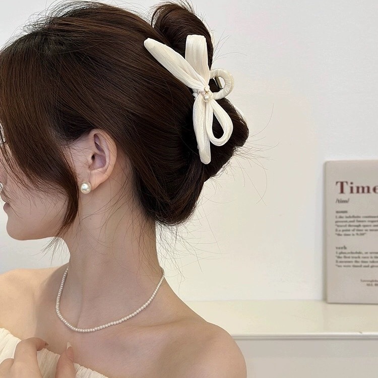 新款超仙韩式简约鲨鱼夹发夹后脑勺盘发优雅蝴蝶飘带结抓夹