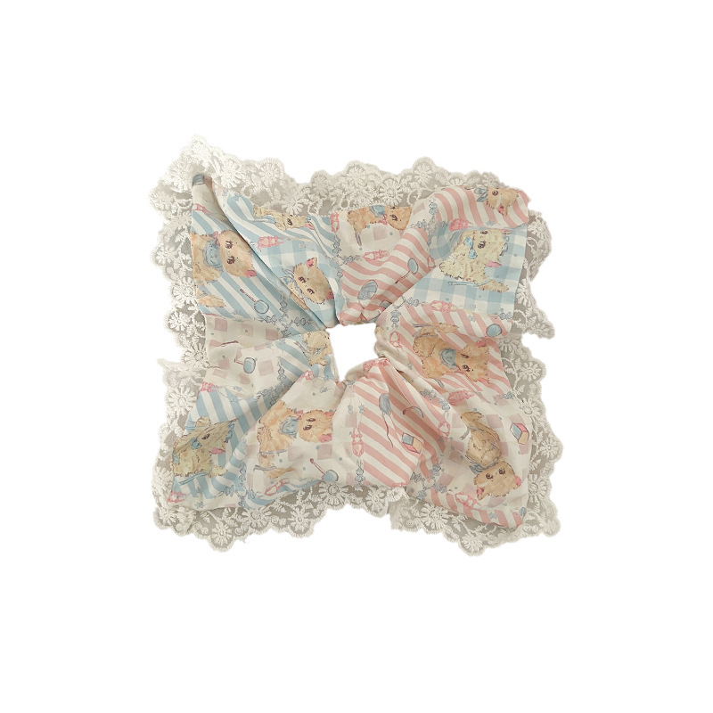 可爱甜美奶油系田园风发圈发饰少女心猫咪蕾丝花边方巾发圈
